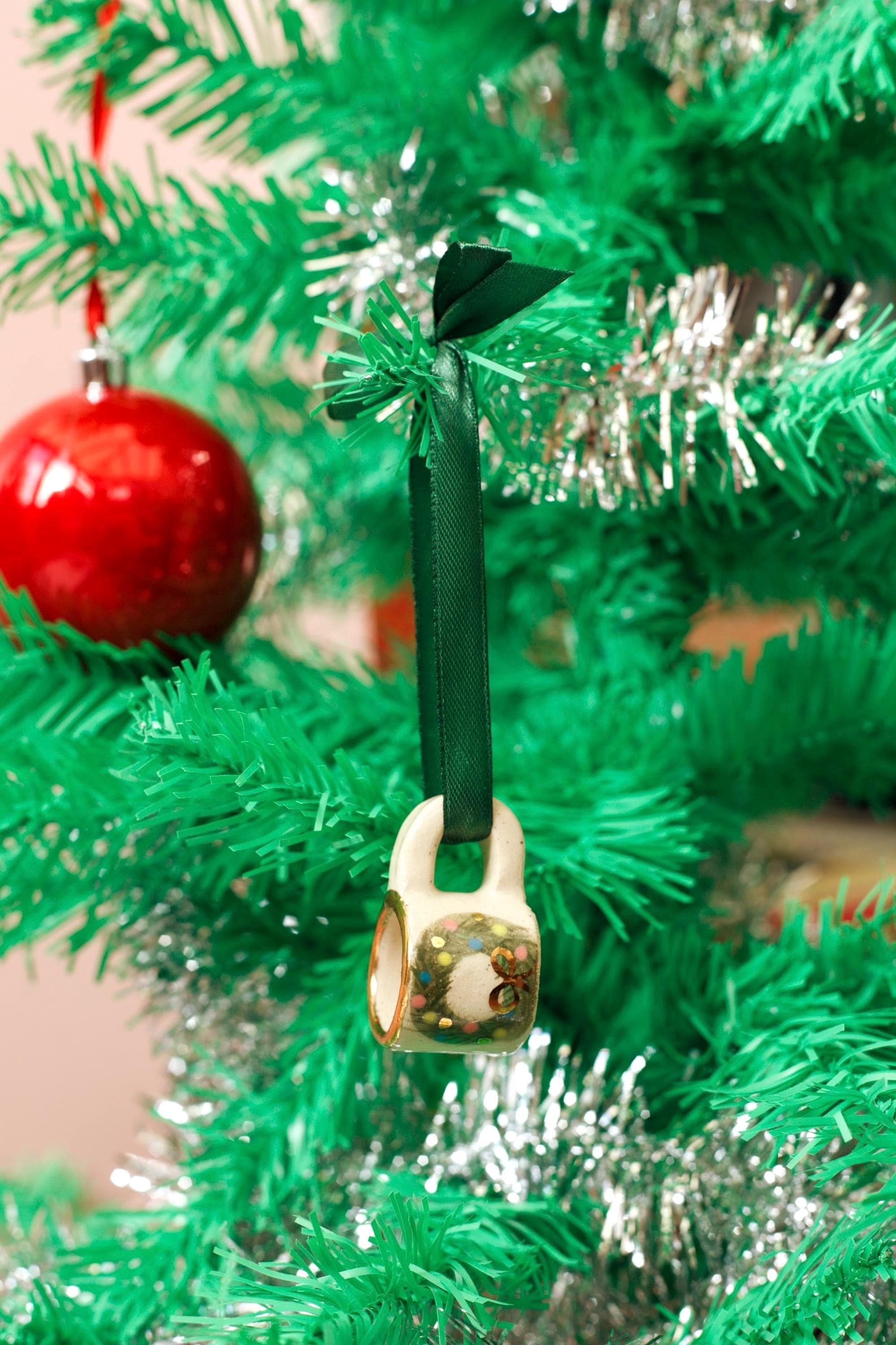 Beautiful and adorable mini ceramic mug ornament! So well made - it brings such cheer to my mini christmas tree - thank you!!
