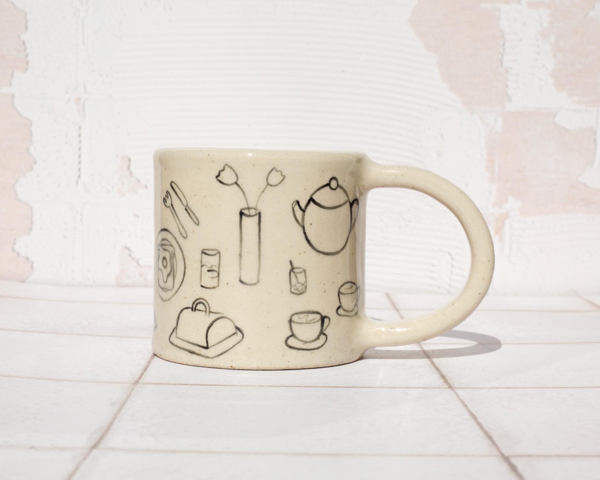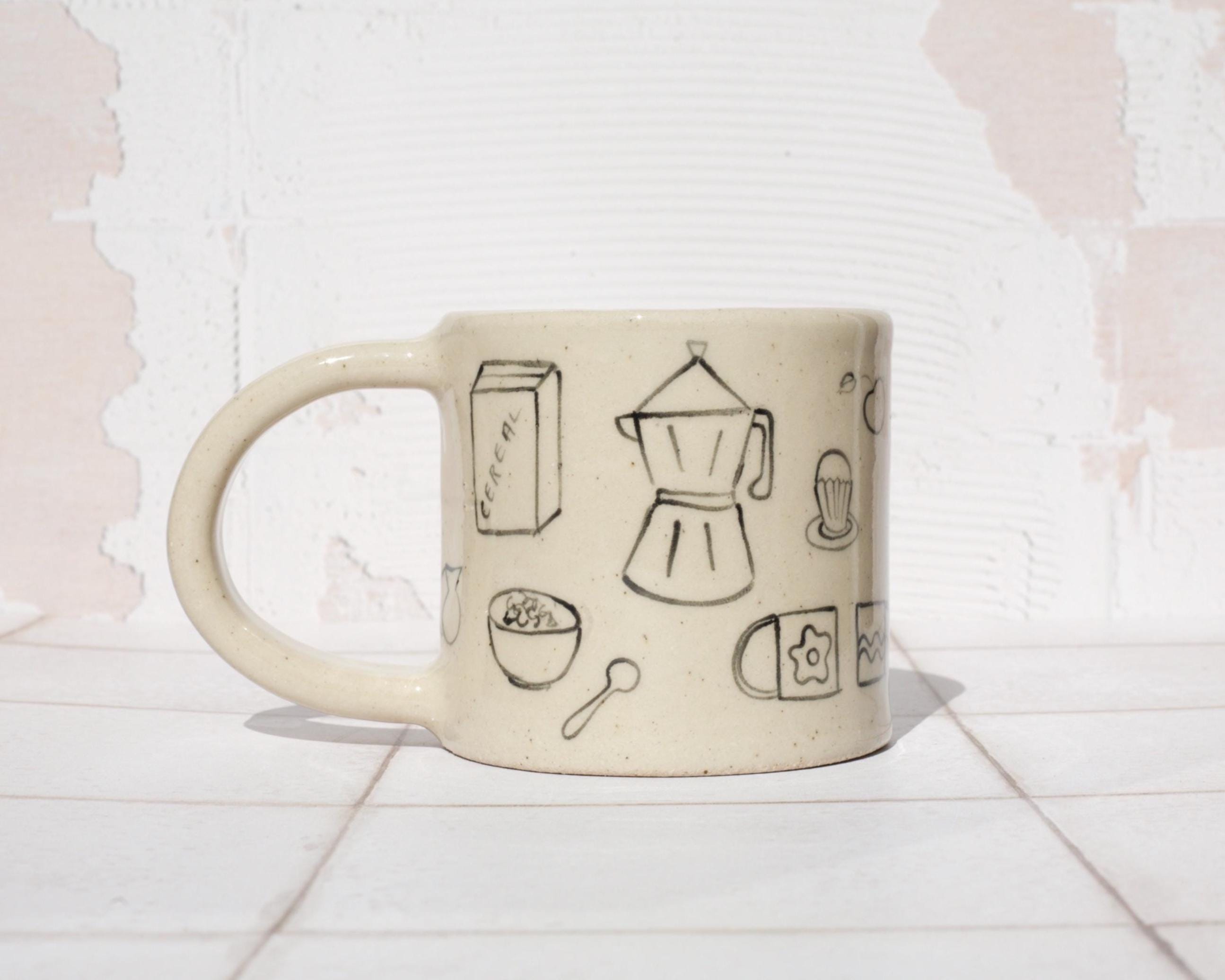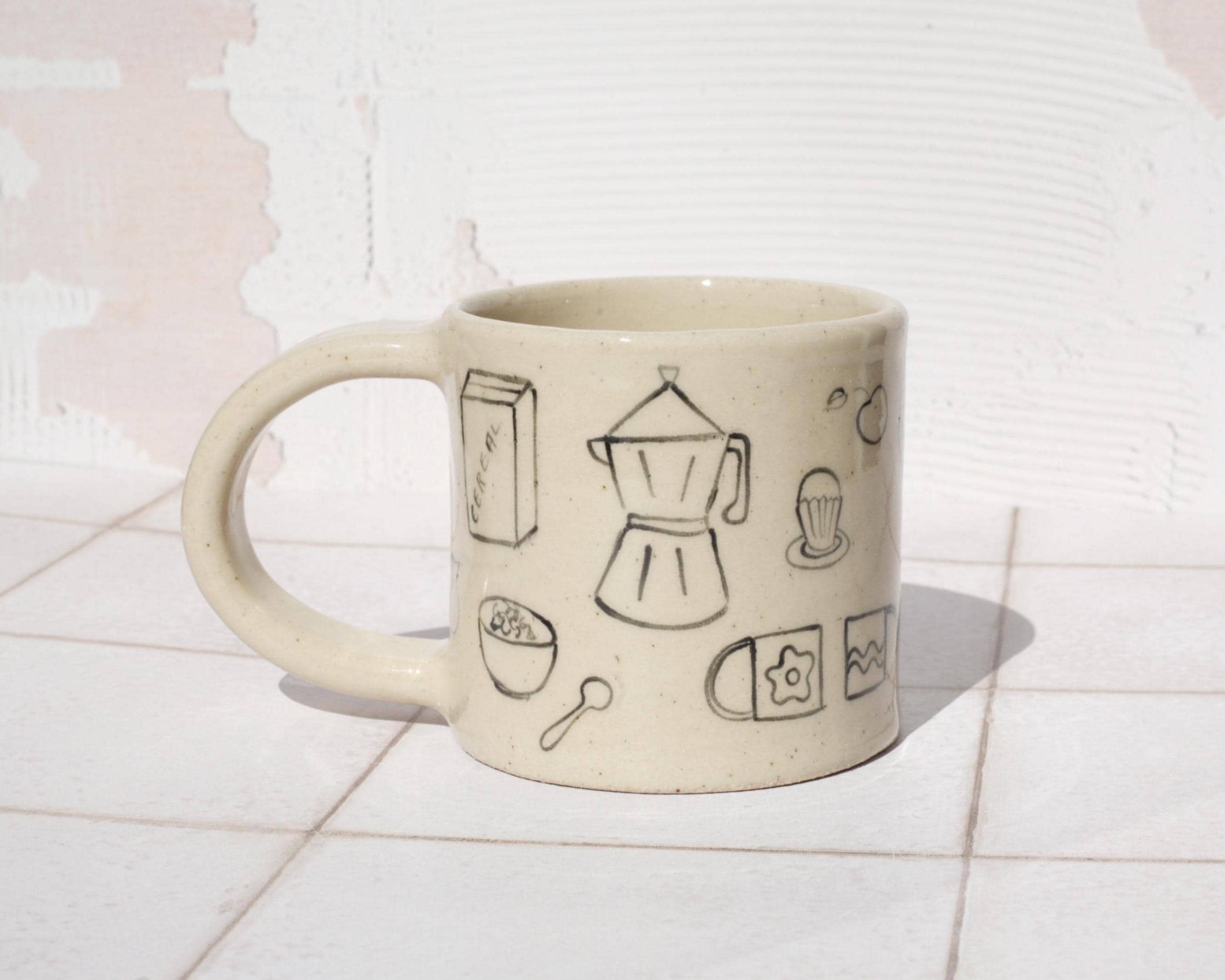 Created by rolling out slabs of clay and adding the pieces together, each mug is lovingly crafted by hand in my studio. Fired twice in a kiln to stoneware temperatures.