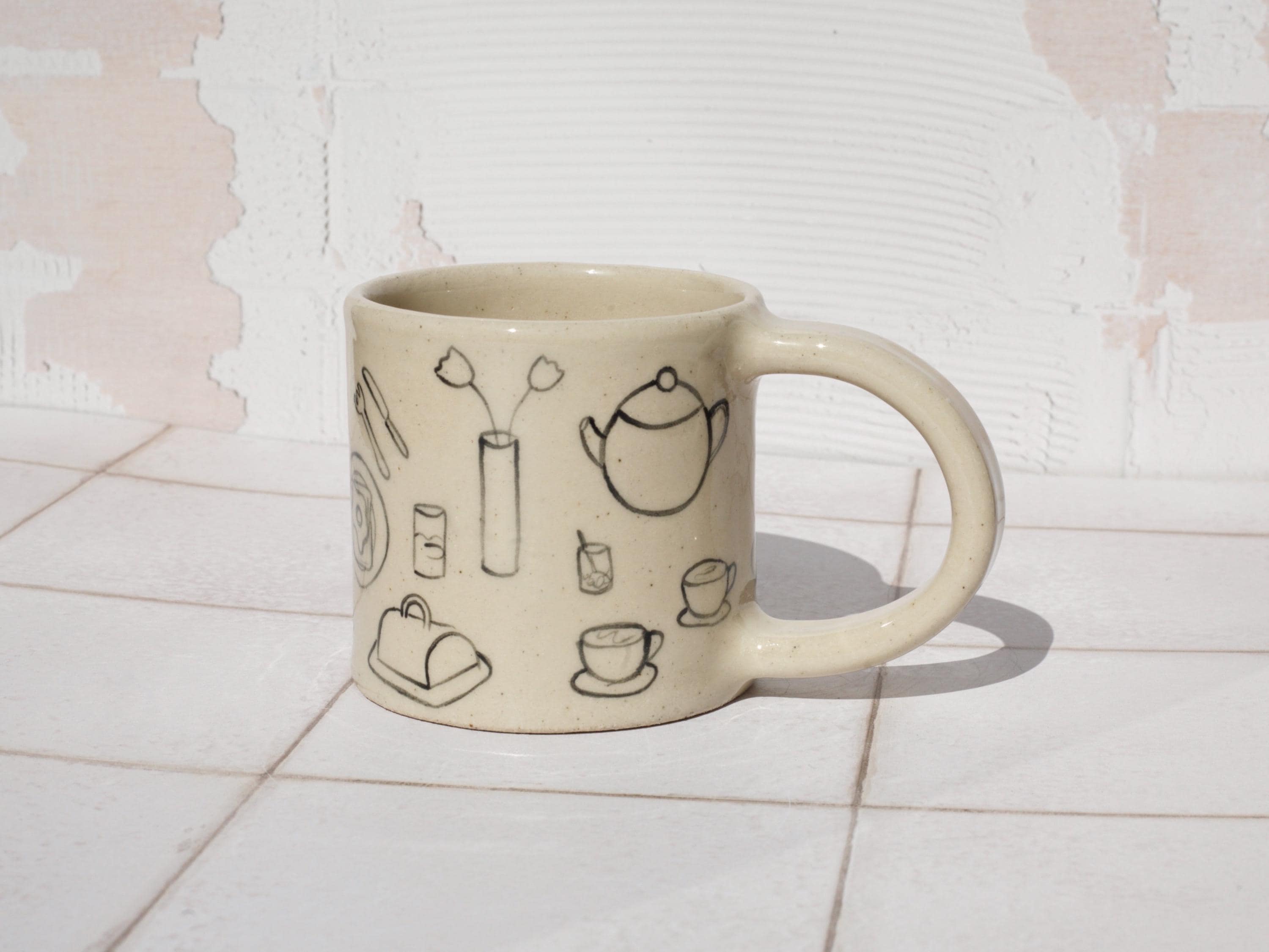 Created by rolling out slabs of clay and adding the pieces together, each mug is lovingly crafted by hand in our London studio. Fired twice in a kiln to stoneware temperatures, this process ensures a long-lasting, durable finish.