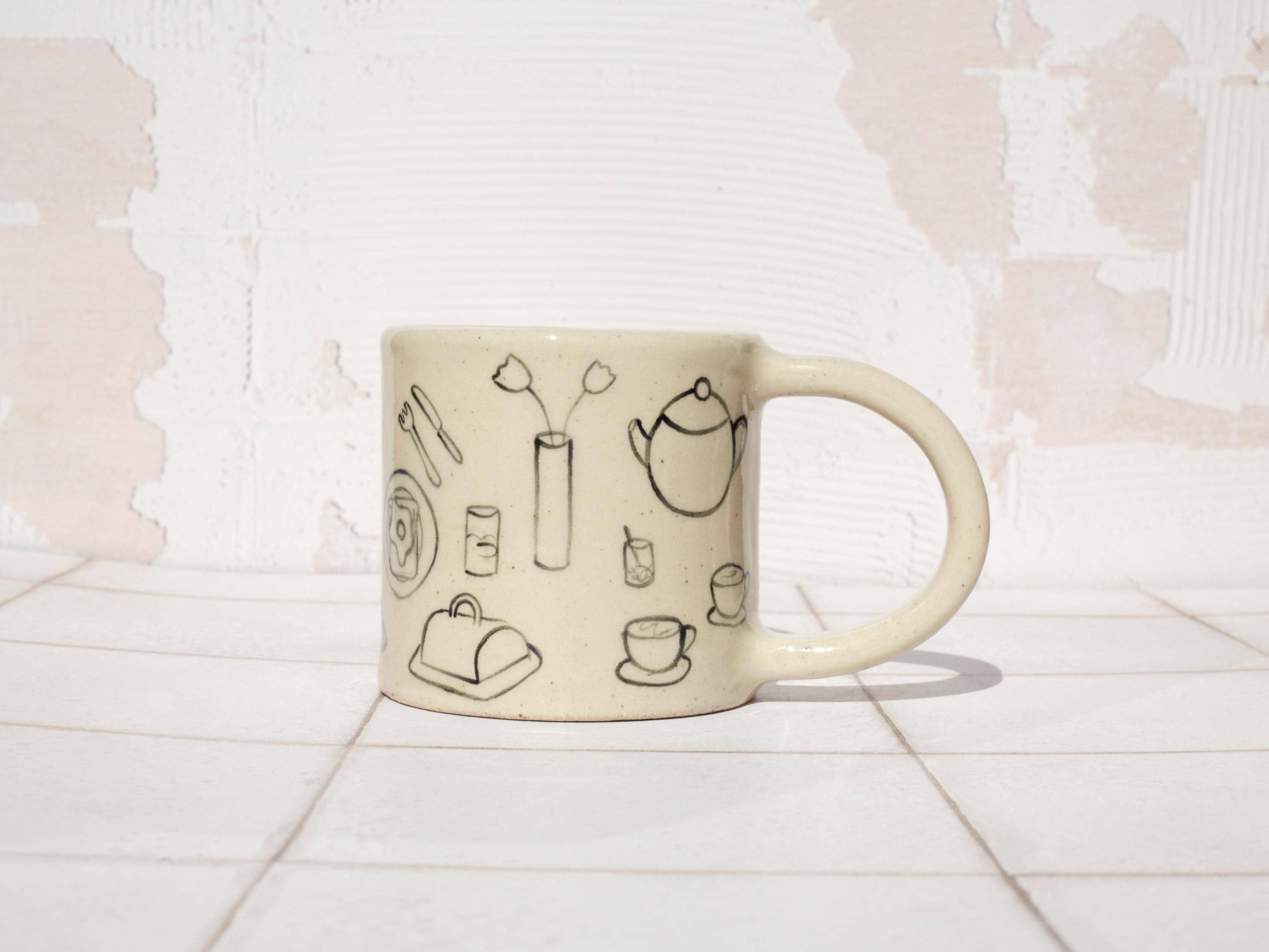 Featuring a hand painted breakfast illustration, this mug is a one-of-a-kind piece that will make a stylish addition to your kitchen. Each piece is completely unique due to its handmade nature.
