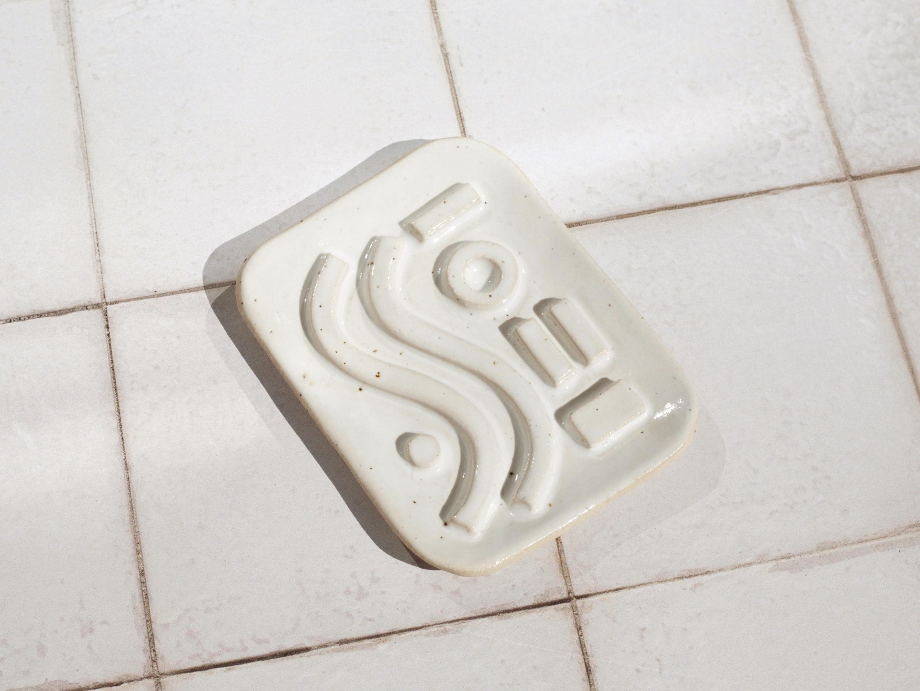 With raised shapes to keep soap dry, each dish is crafted from cut clay slabs and fired to stoneware temperatures for durability.