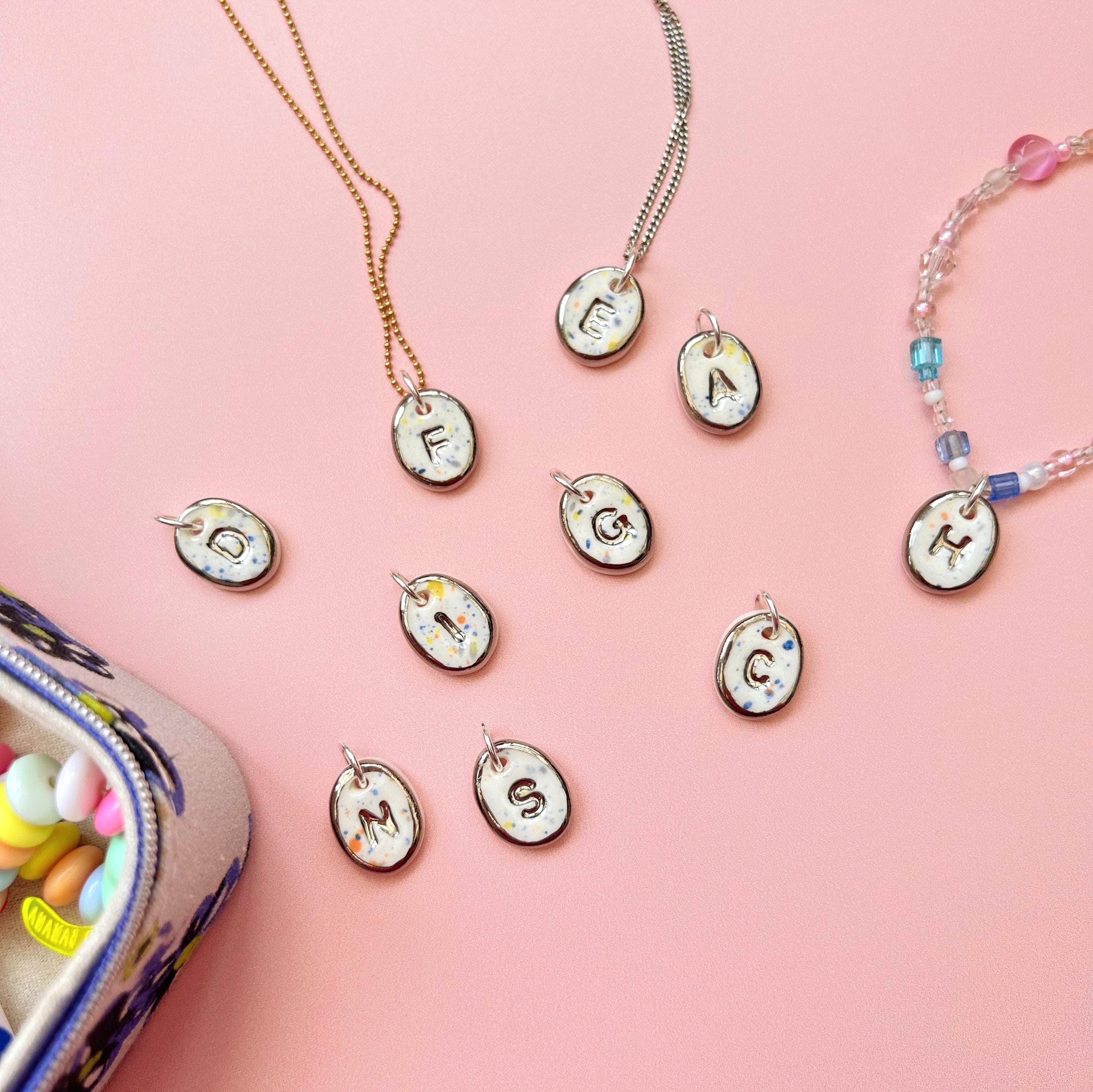 Handmade Porcelain Pendant Initial - Alphabet Letter - Silver colour (pendant only)