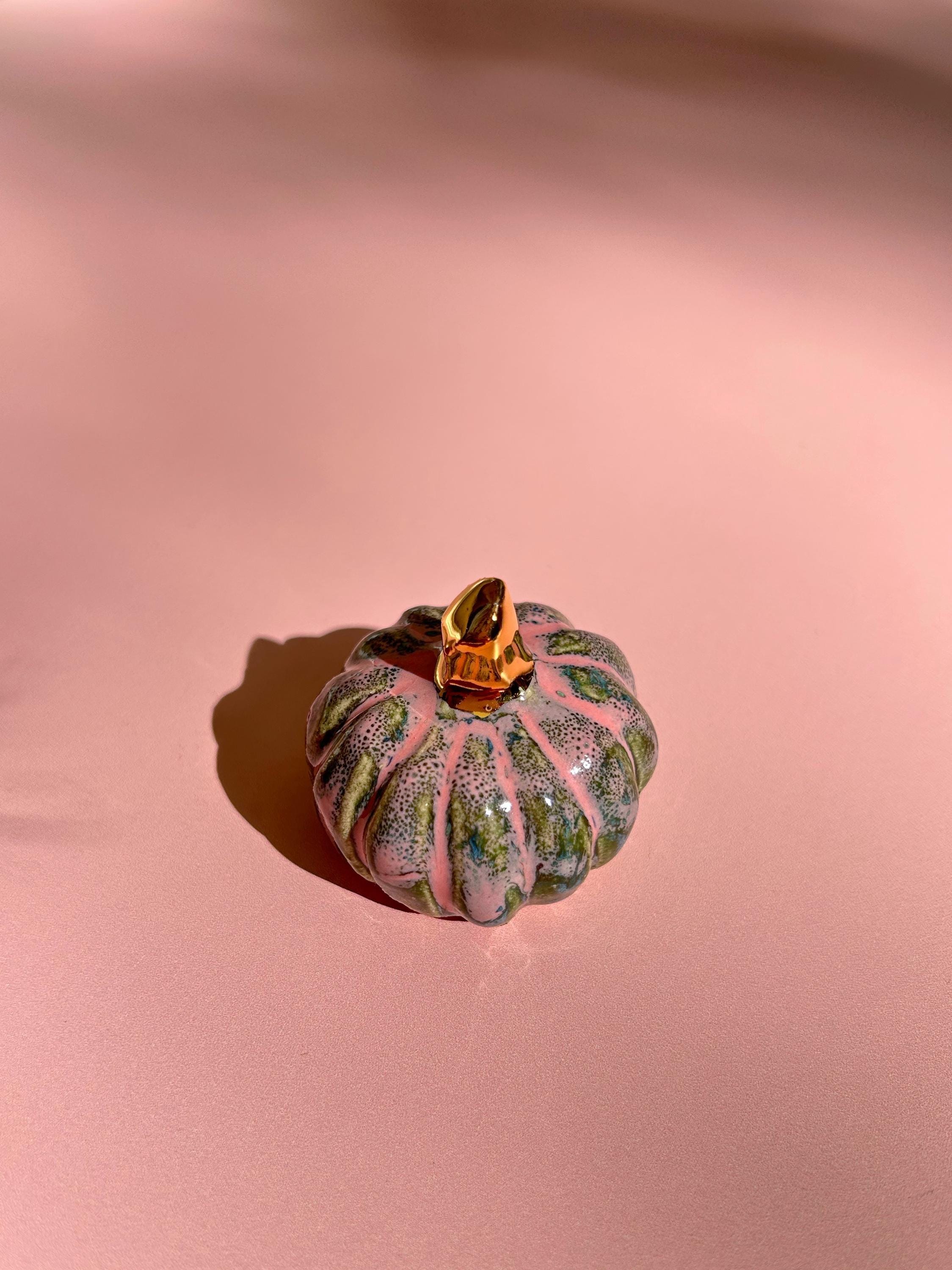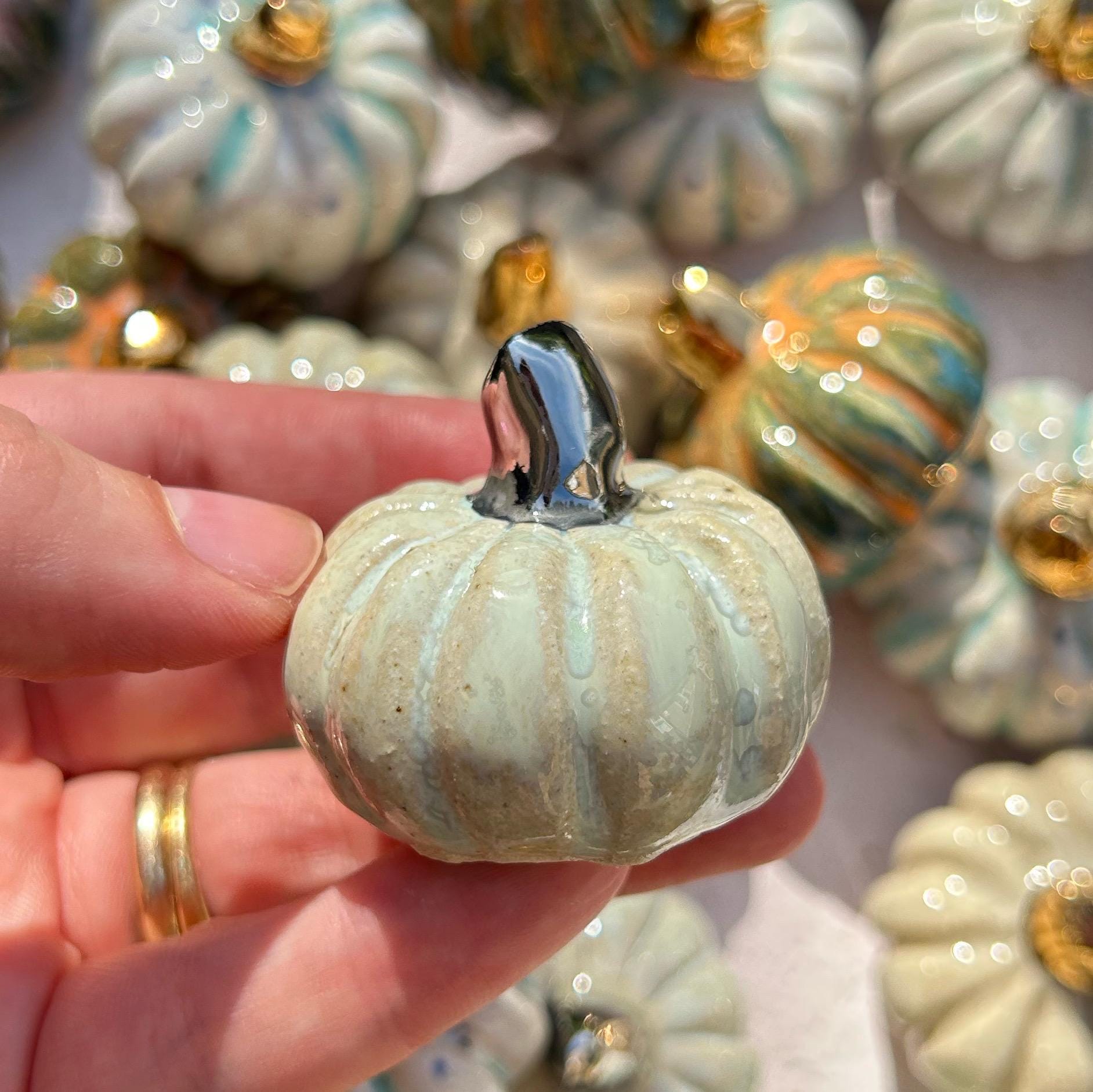 Bring a touch of autumn magic to your decor with this handcrafted ceramic pumpkin. Perfectly sized for a festive accent, this pumpkin features a gold or platinum lustre stem.