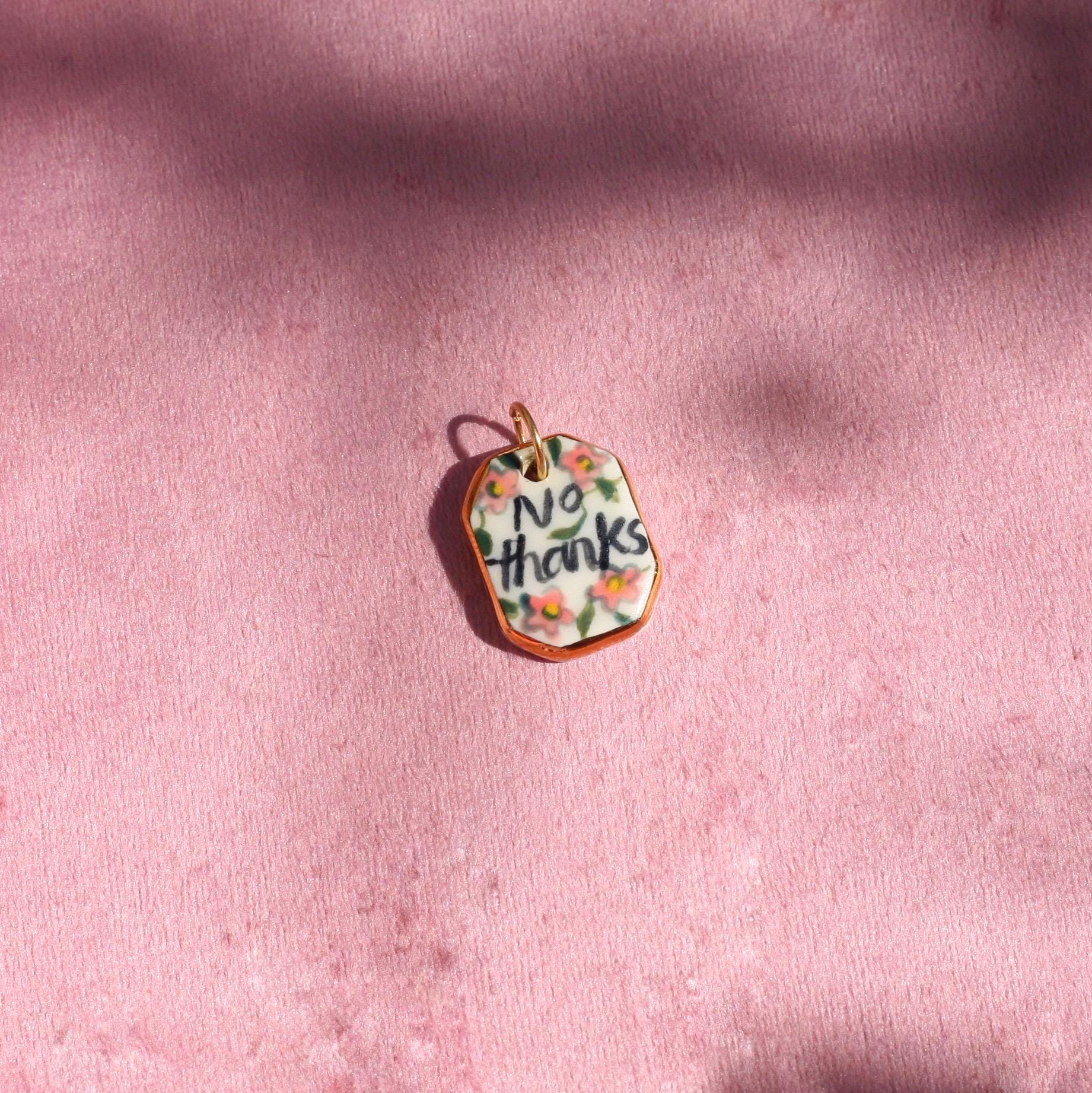 Handmade with care, this porcelain pendant is hand-painted and finished with a touch of genuine gold lustre along the edges for a subtle shine. Each charm comes fitted with a gold-filled brass jump ring, ready to be added to your own necklace.