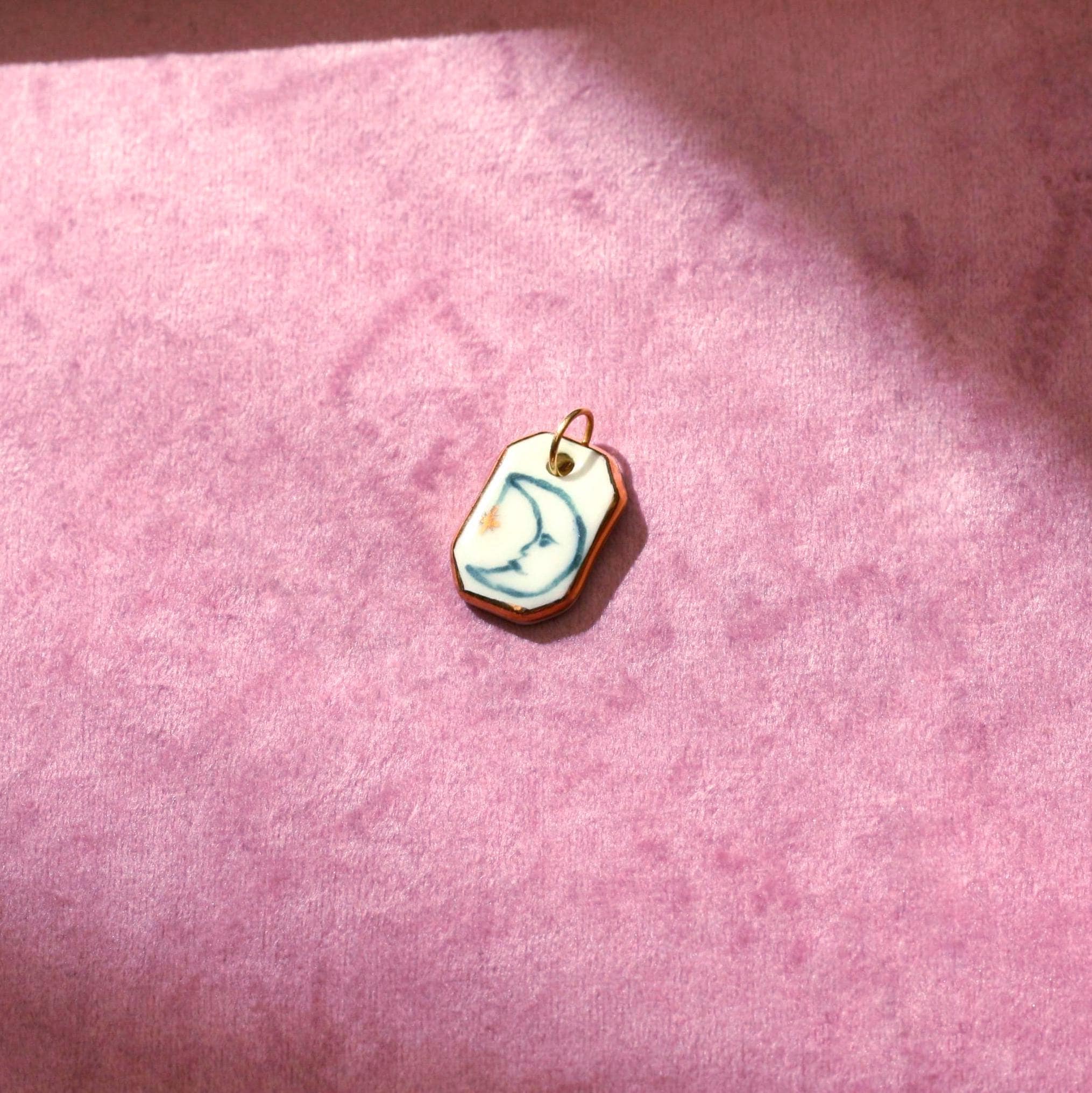 Handmade with care, this porcelain pendant is hand-painted and finished with a touch of genuine gold lustre along the edges for a subtle shine. Each charm comes fitted with a gold-filled brass jump ring, ready to be added to your own necklace.