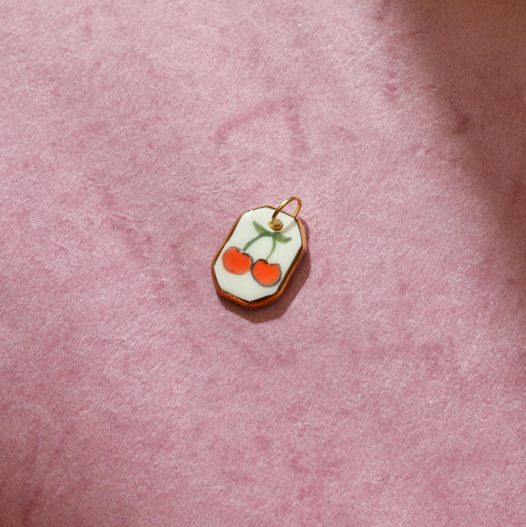 Handmade with care, this porcelain pendant is hand-painted and finished with a touch of genuine gold lustre along the edges for a subtle shine. Each charm comes fitted with a gold-filled brass jump ring, ready to be added to your own necklace.
