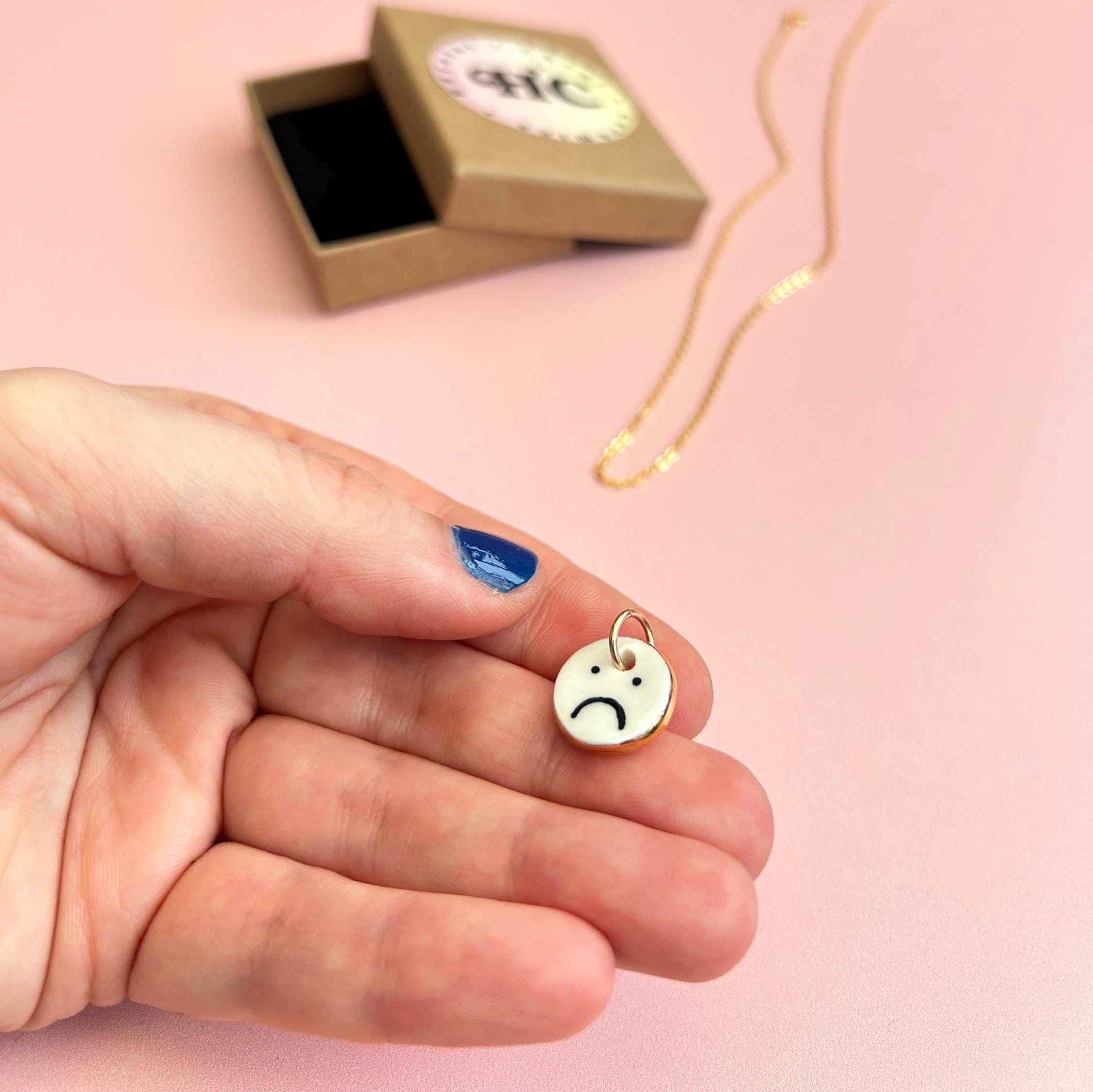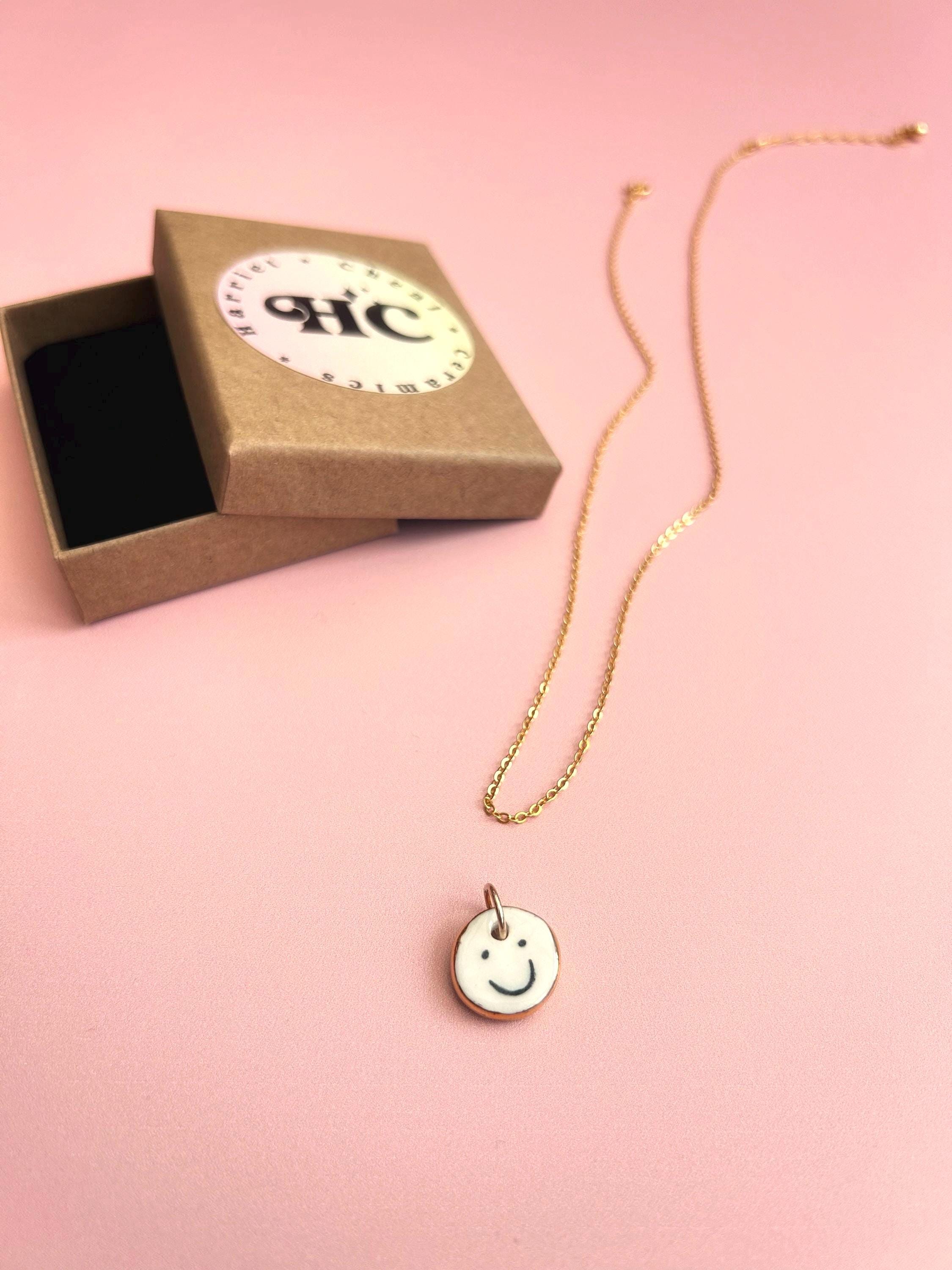 Handmade with care, this porcelain pendant is hand-painted and finished with a touch of genuine gold lustre along the edges for a subtle shine. Each charm comes fitted with a gold-filled brass jump ring, ready to be added to your own necklace.