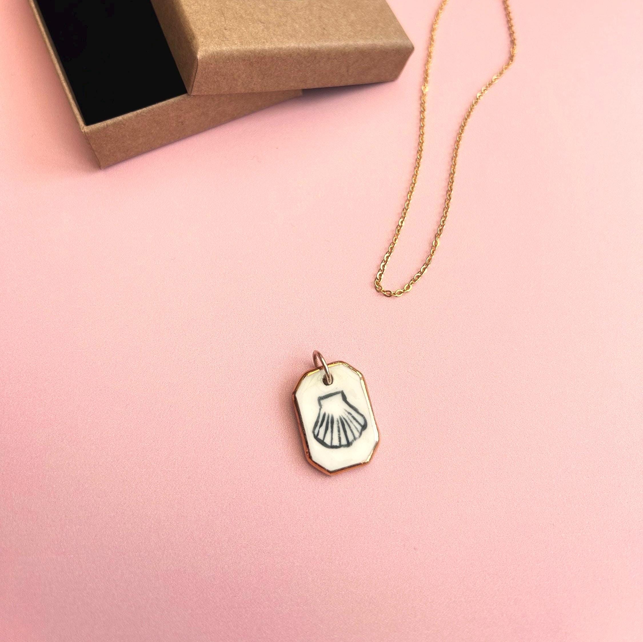 Shell Pendant With Gold Lustre – Handmade Ceramic Seashell Pendant – Nautical Beach Charm for Necklace