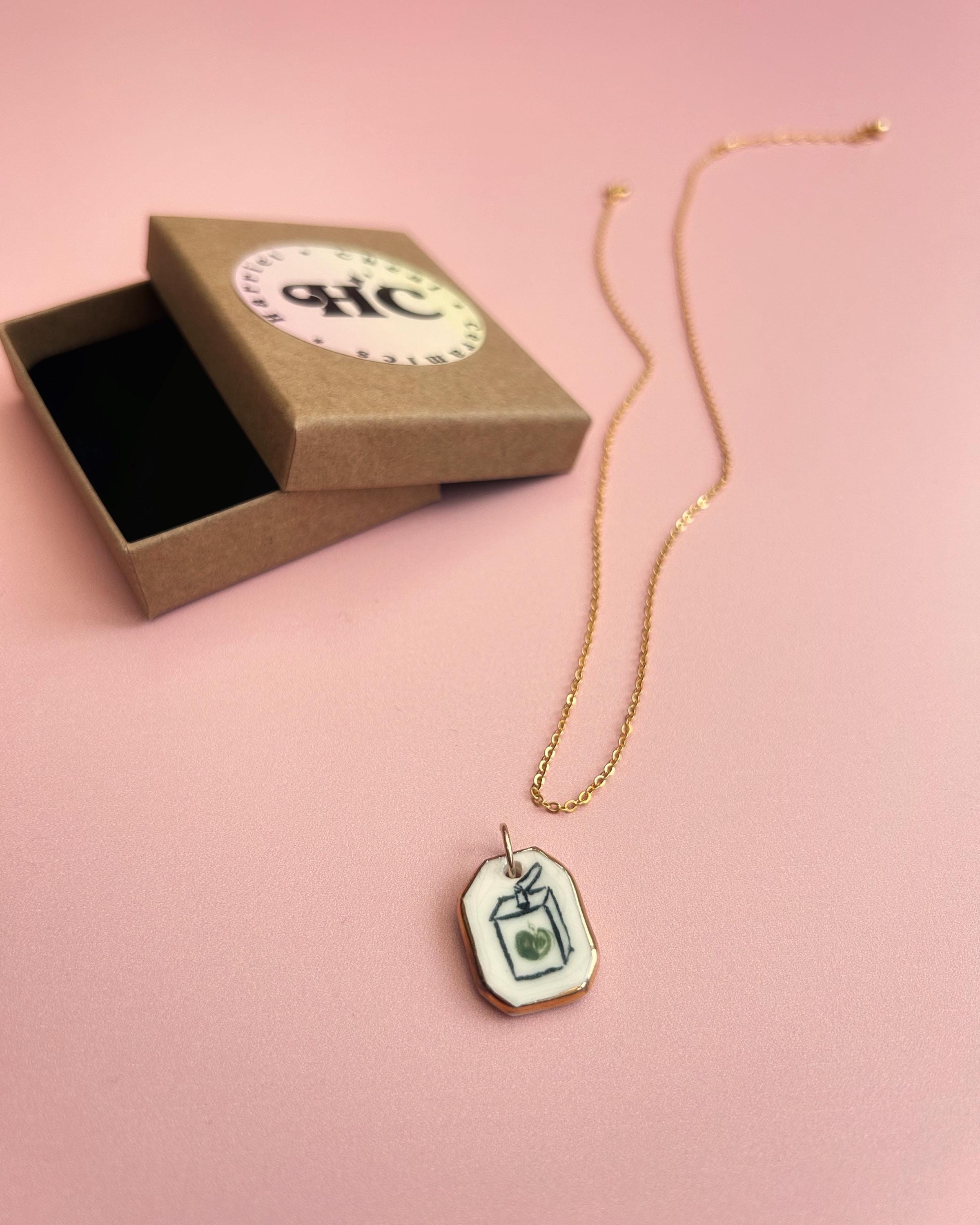 Handmade Ceramic Apple Juice Carton Pendant - Gold Lustre Edge