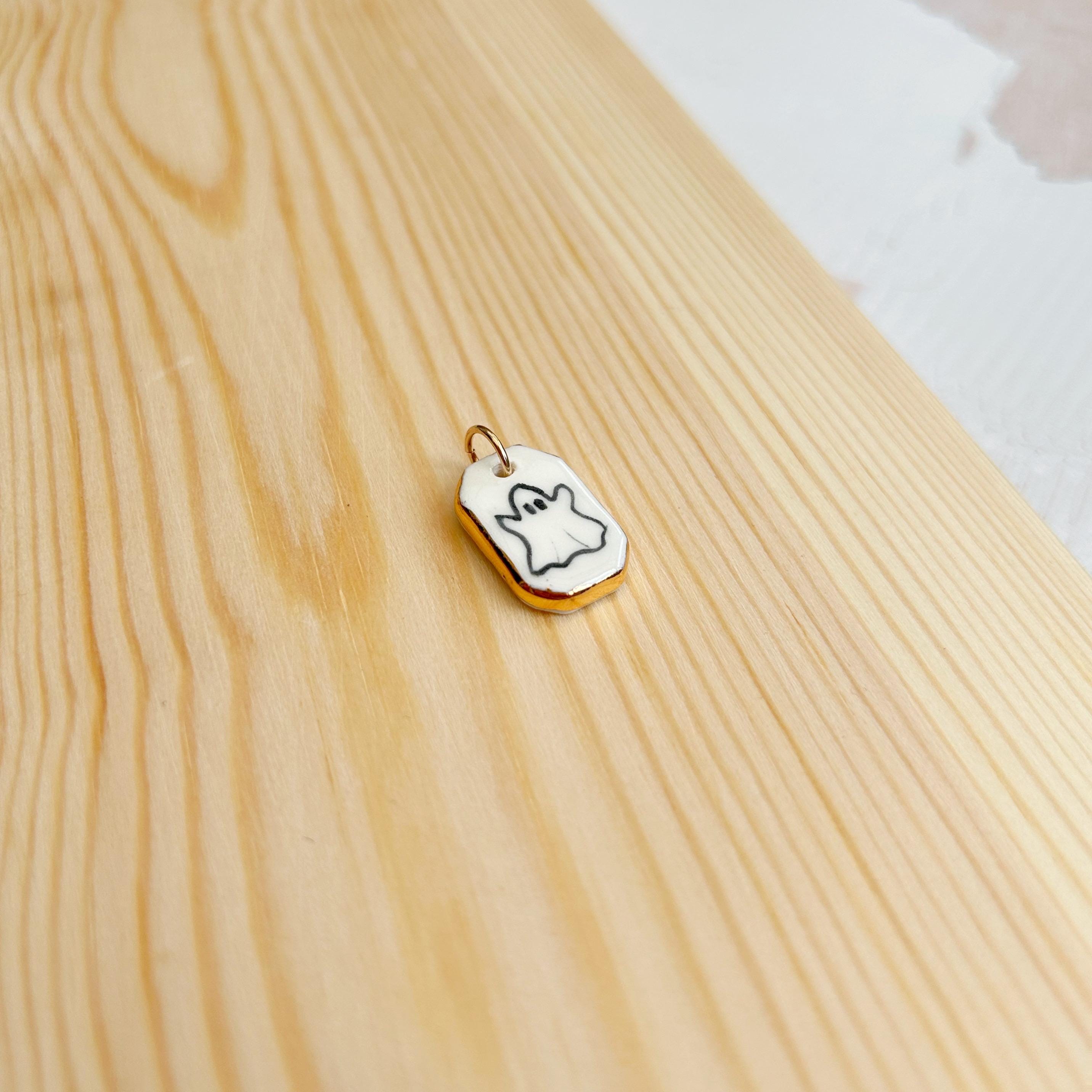 Handmade with care, this porcelain pendant is hand-painted and finished with a touch of genuine gold lustre along the edges for a subtle shine. Each charm comes fitted with a gold-filled brass jump ring, ready to be added to your own necklace.