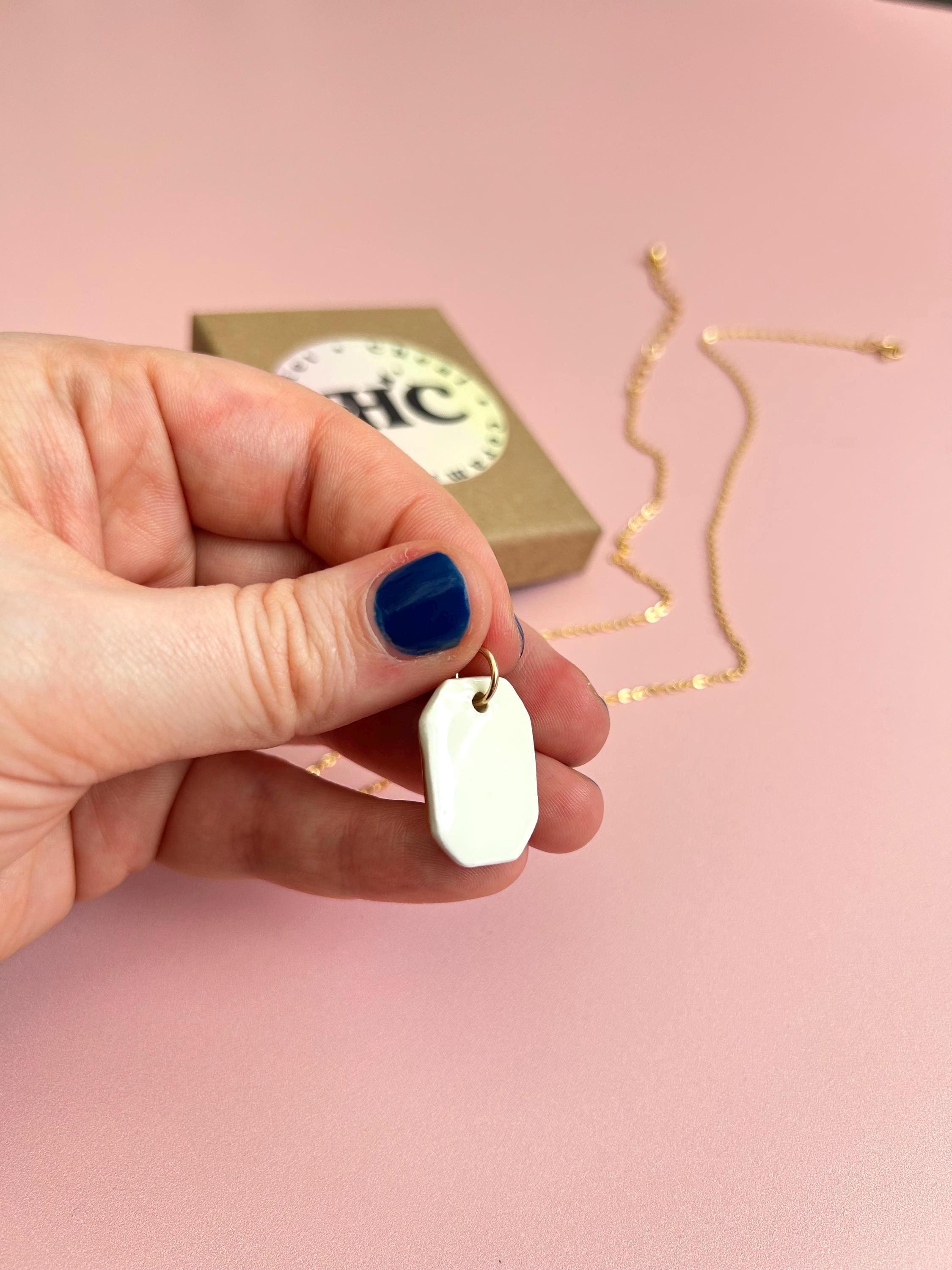 This porcelain pendant is hand painted with a pink floral design and finished with genuine gold lustre along the edges. Each charm comes with a gold plated brass jump ring, ready to add to your own necklace.