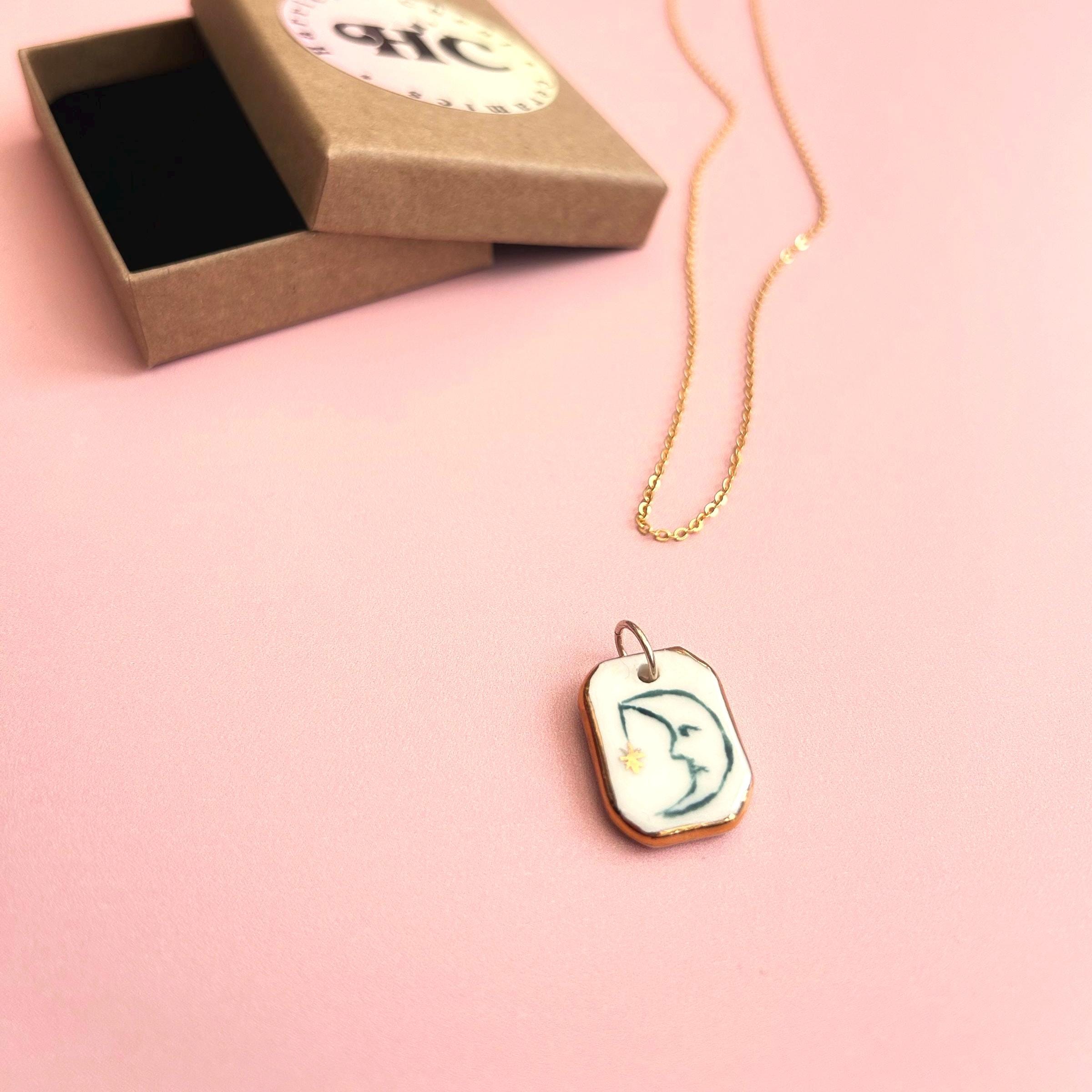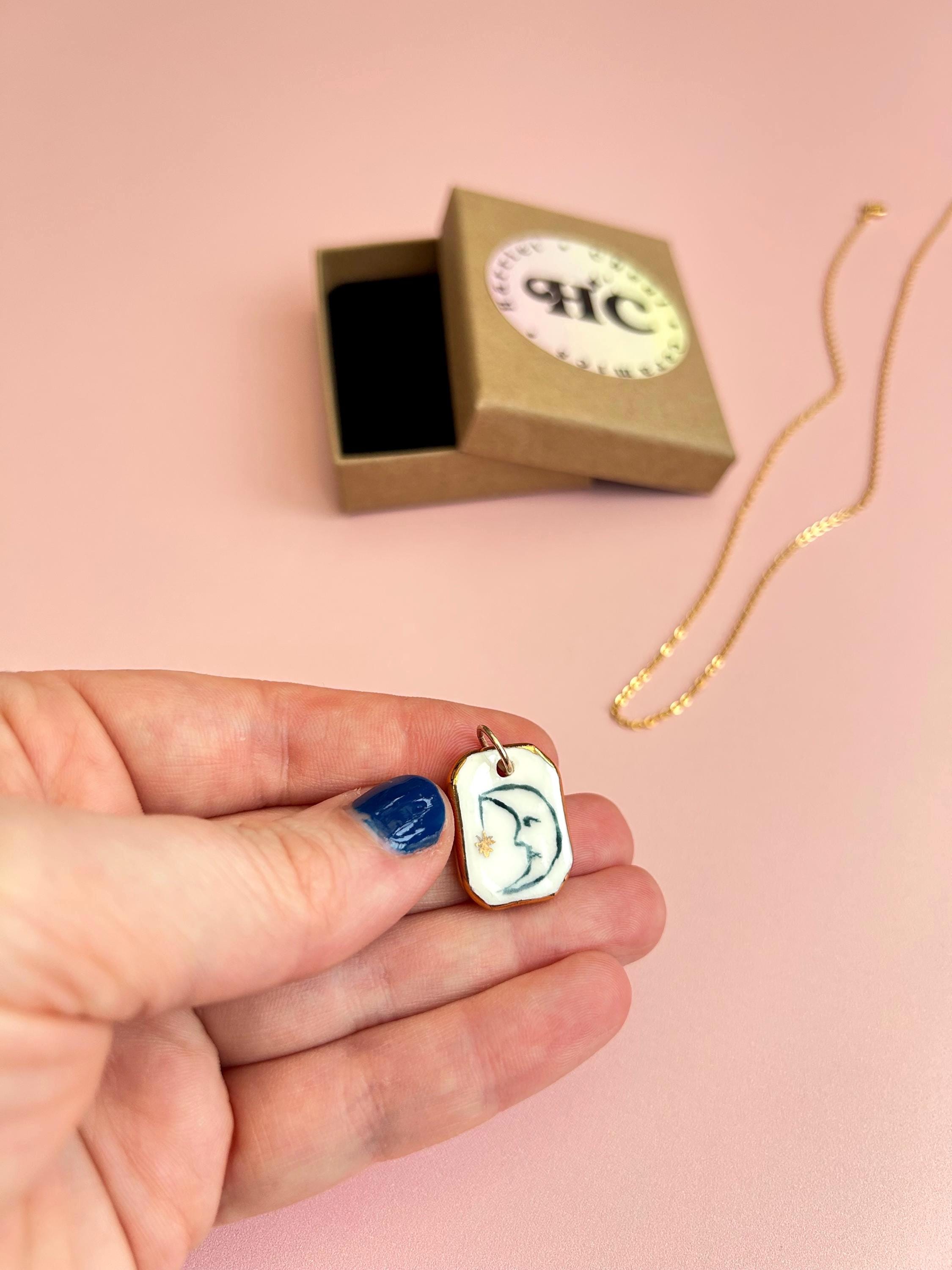 Hand-Painted Ceramic Celestial Moon Face Pendant (2cm)– Gold Lustre Edge