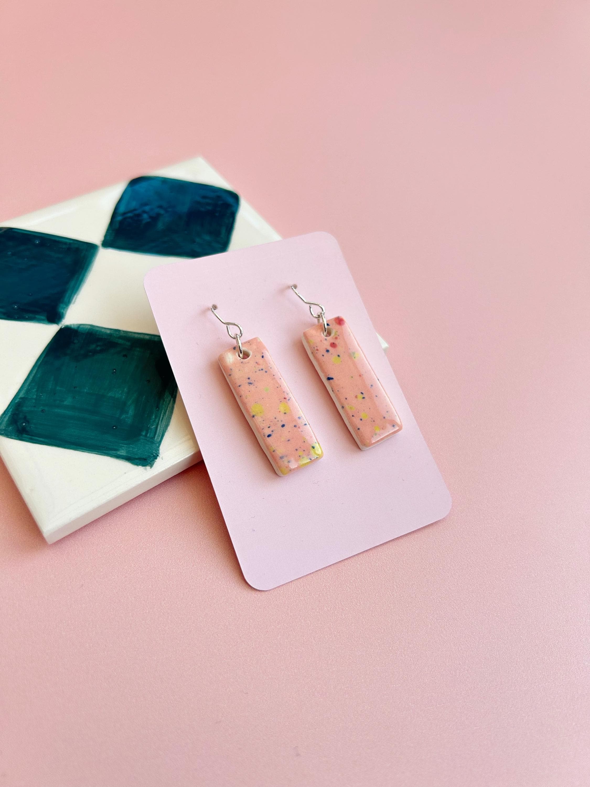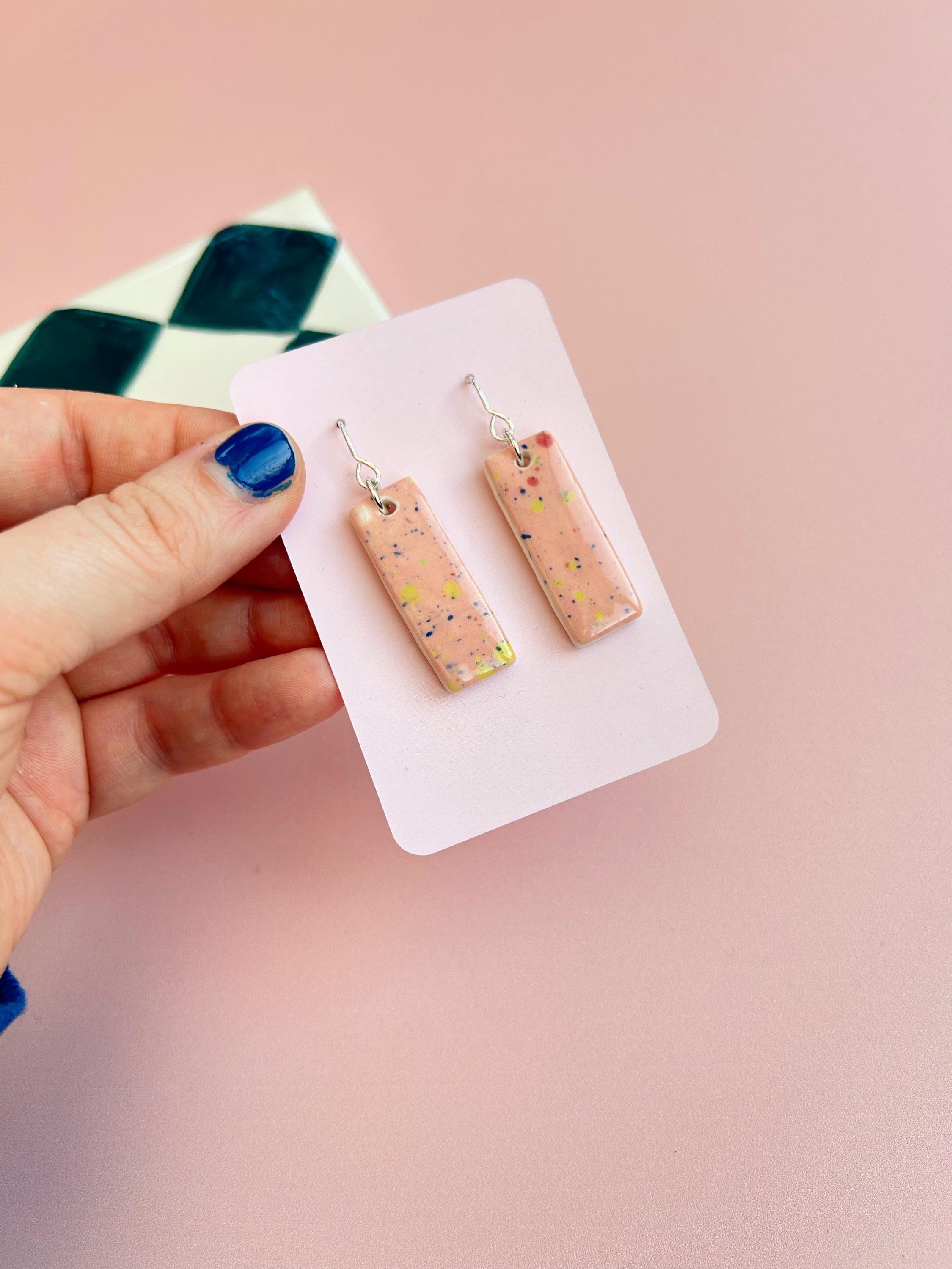 Handmade Ceramic Earrings - Hand-Painted Drop Earrings with Sterling Silver Hooks