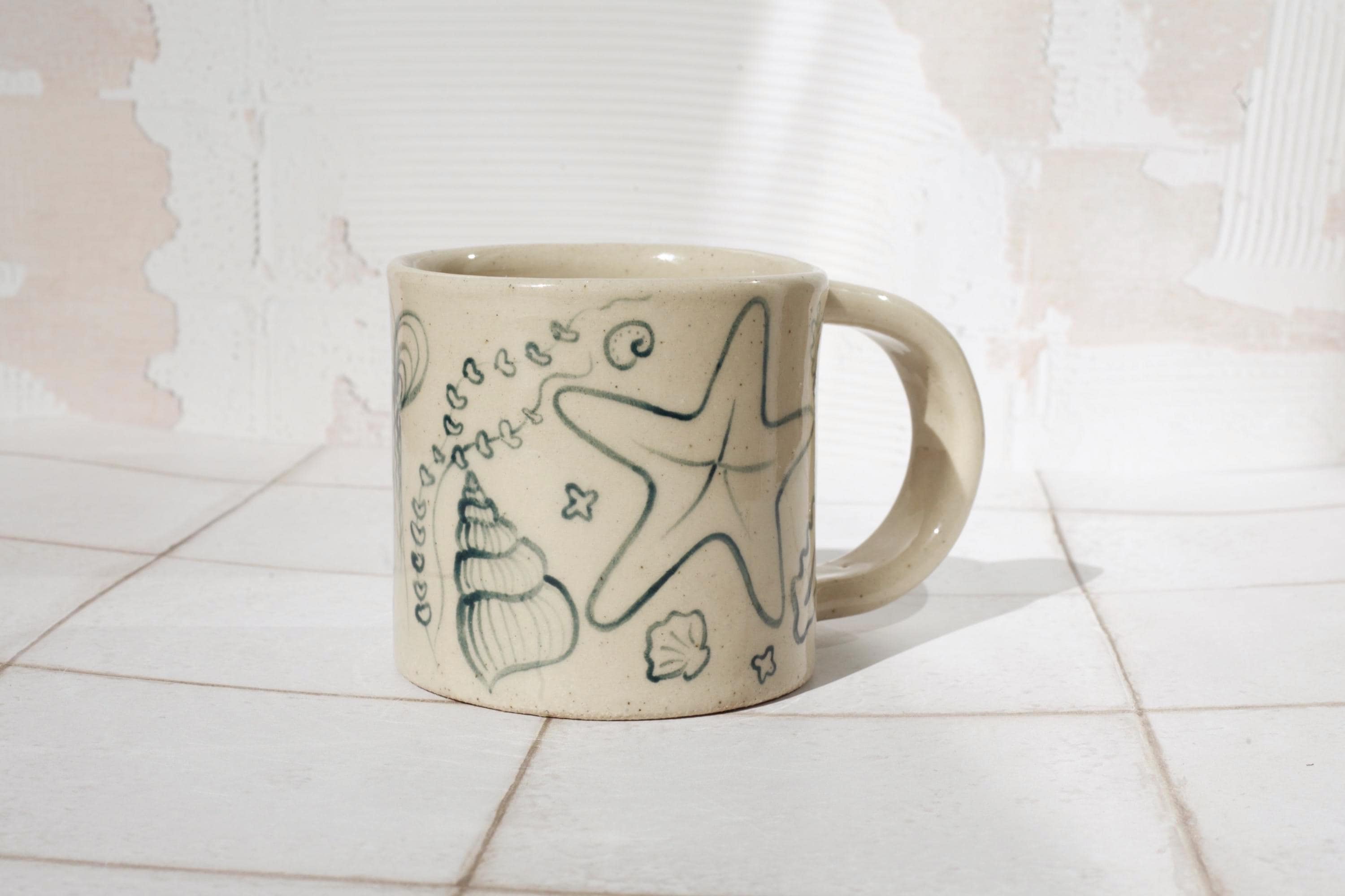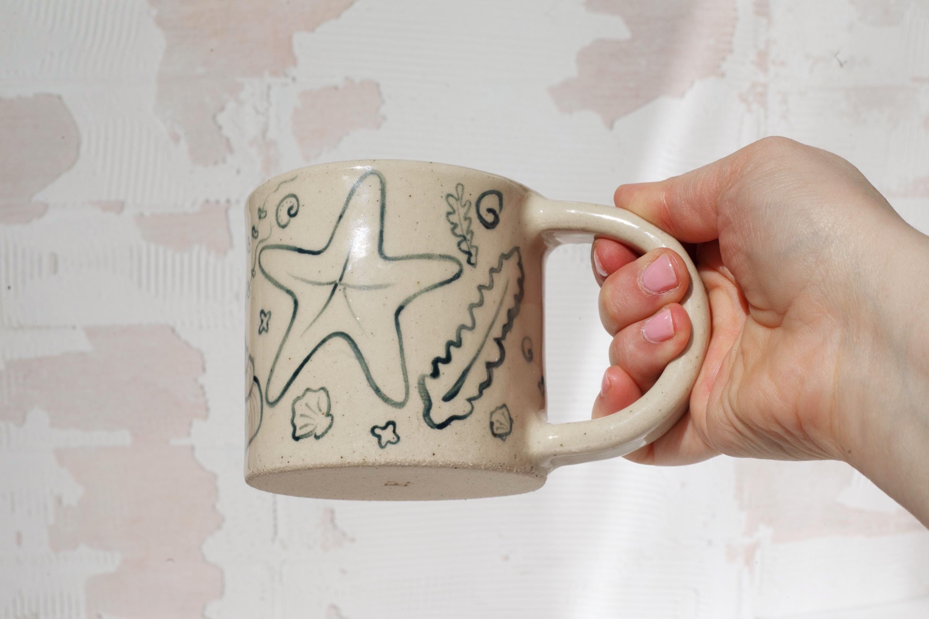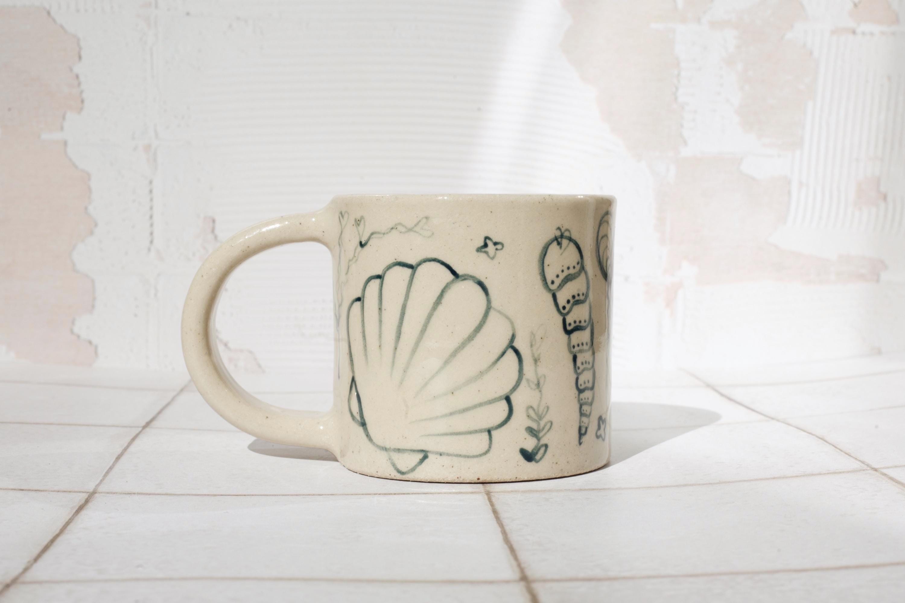 Created by rolling out slabs of clay and adding the pieces together, each mug is lovingly crafted by hand in my studio. Fired twice in a kiln to stoneware temperatures.