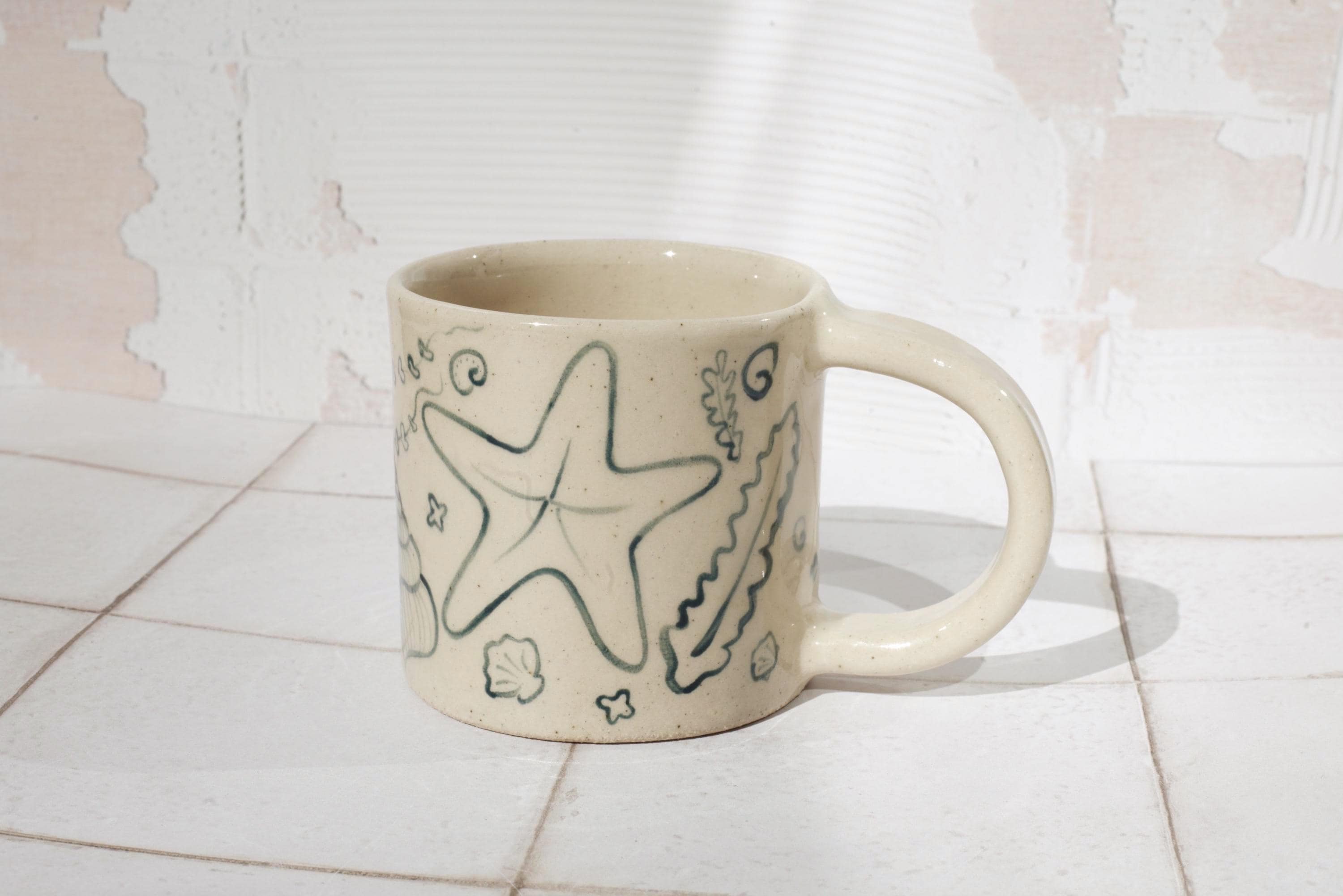 Featuring hand painted sea illustration, each mug will appear slightly different due to its hand made nature.