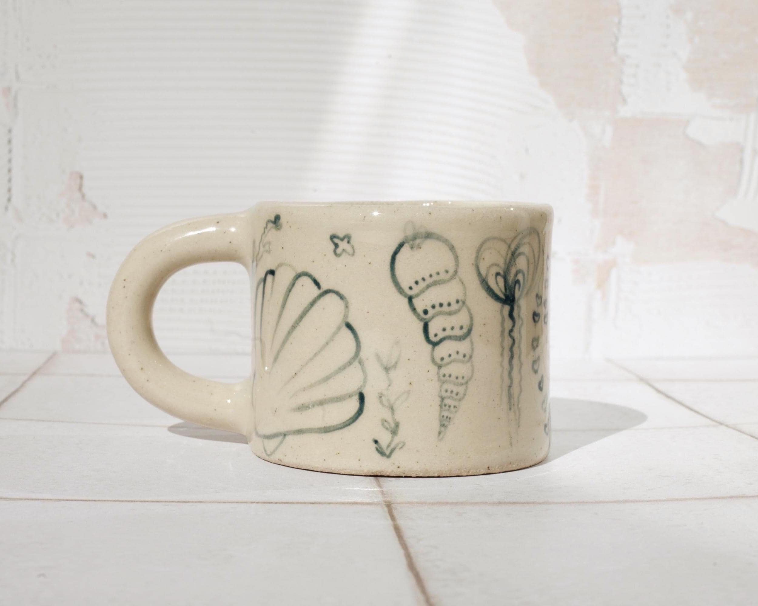 Created by rolling out slabs of clay and adding the pieces together, each mug is lovingly crafted by hand in my studio. Fired twice in a kiln to stoneware temperatures.