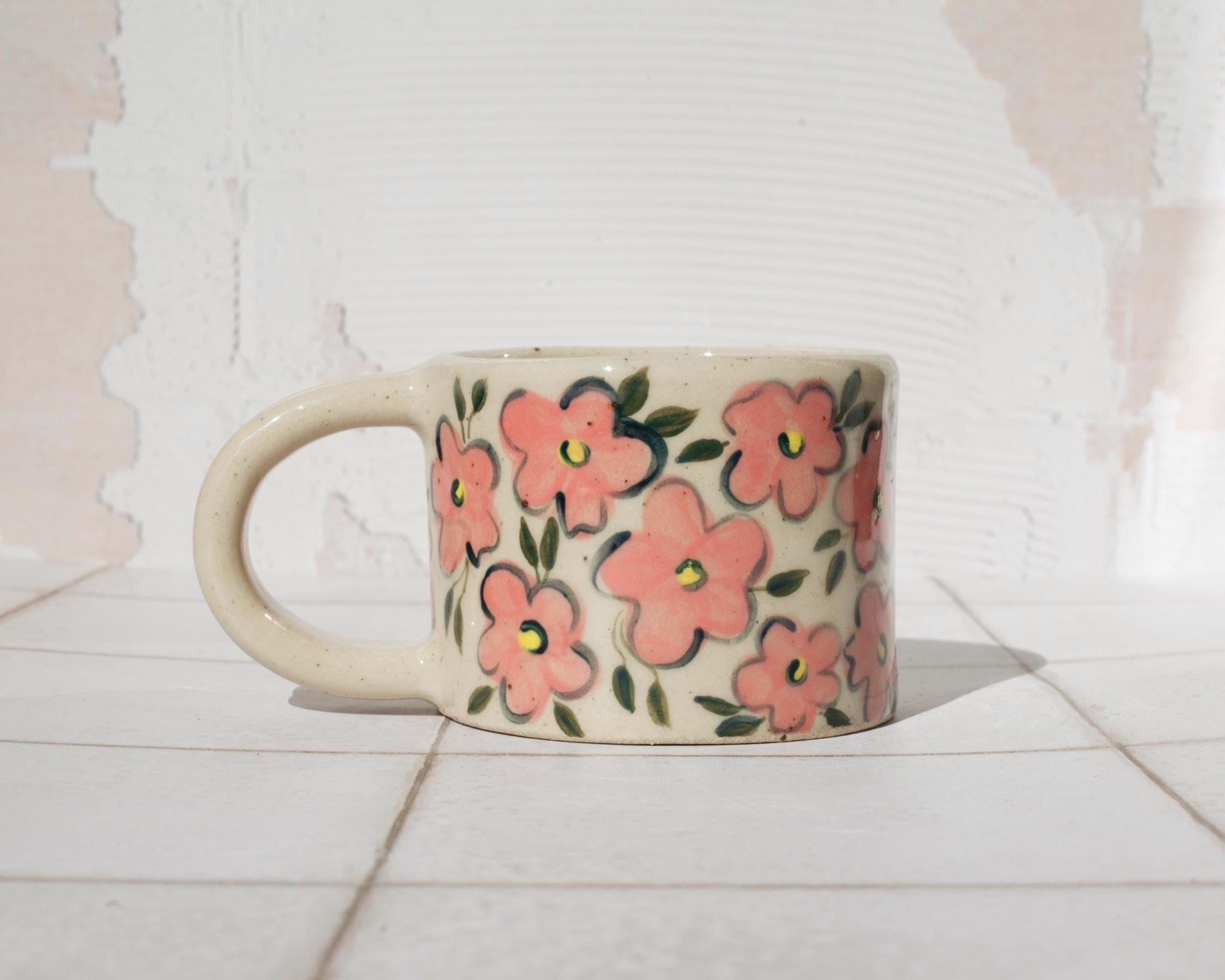 Featuring hand painted flowers, each mug will appear slightly different due to its hand made nature.