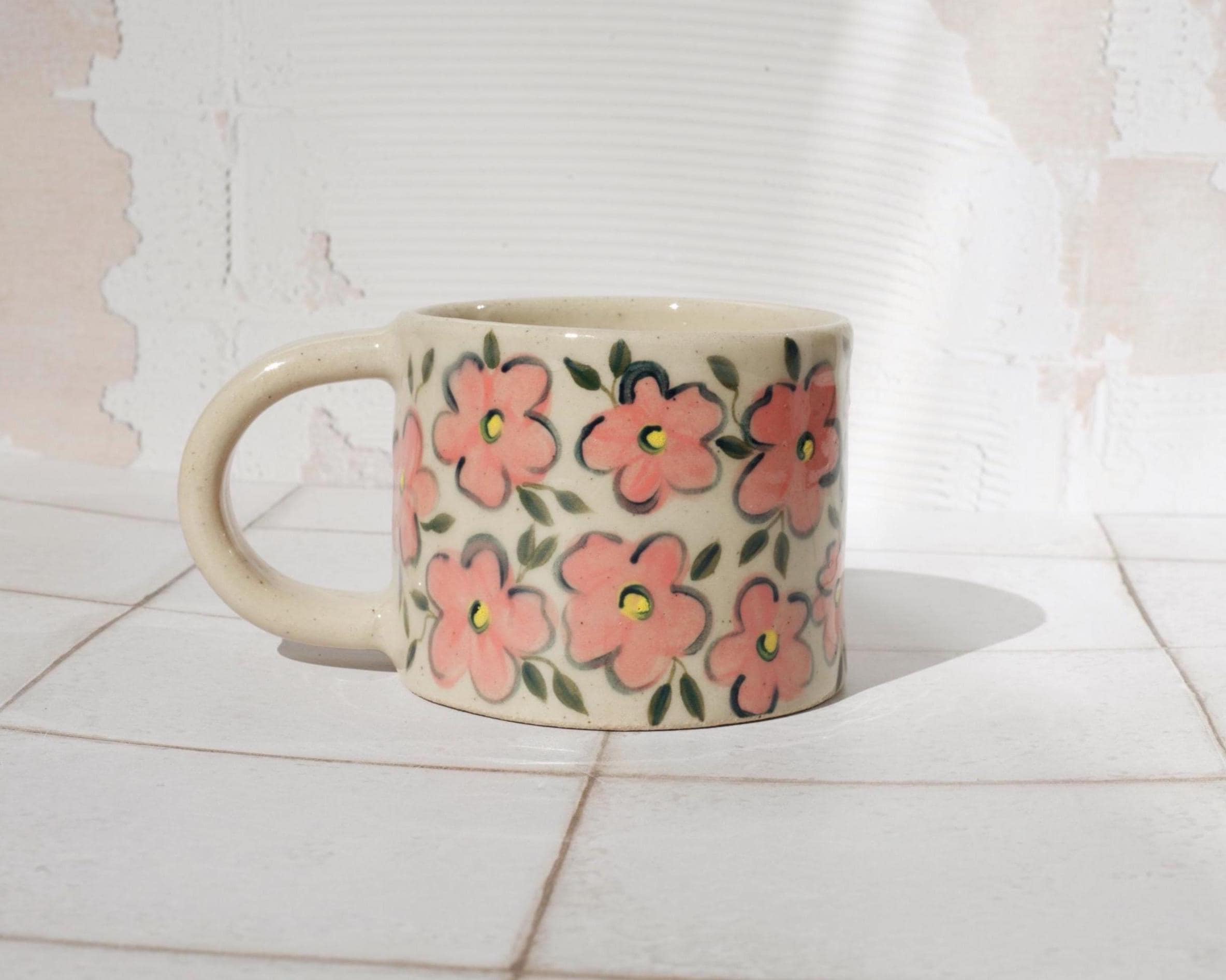 Featuring hand painted flowers, each mug will appear slightly different due to its hand made nature.