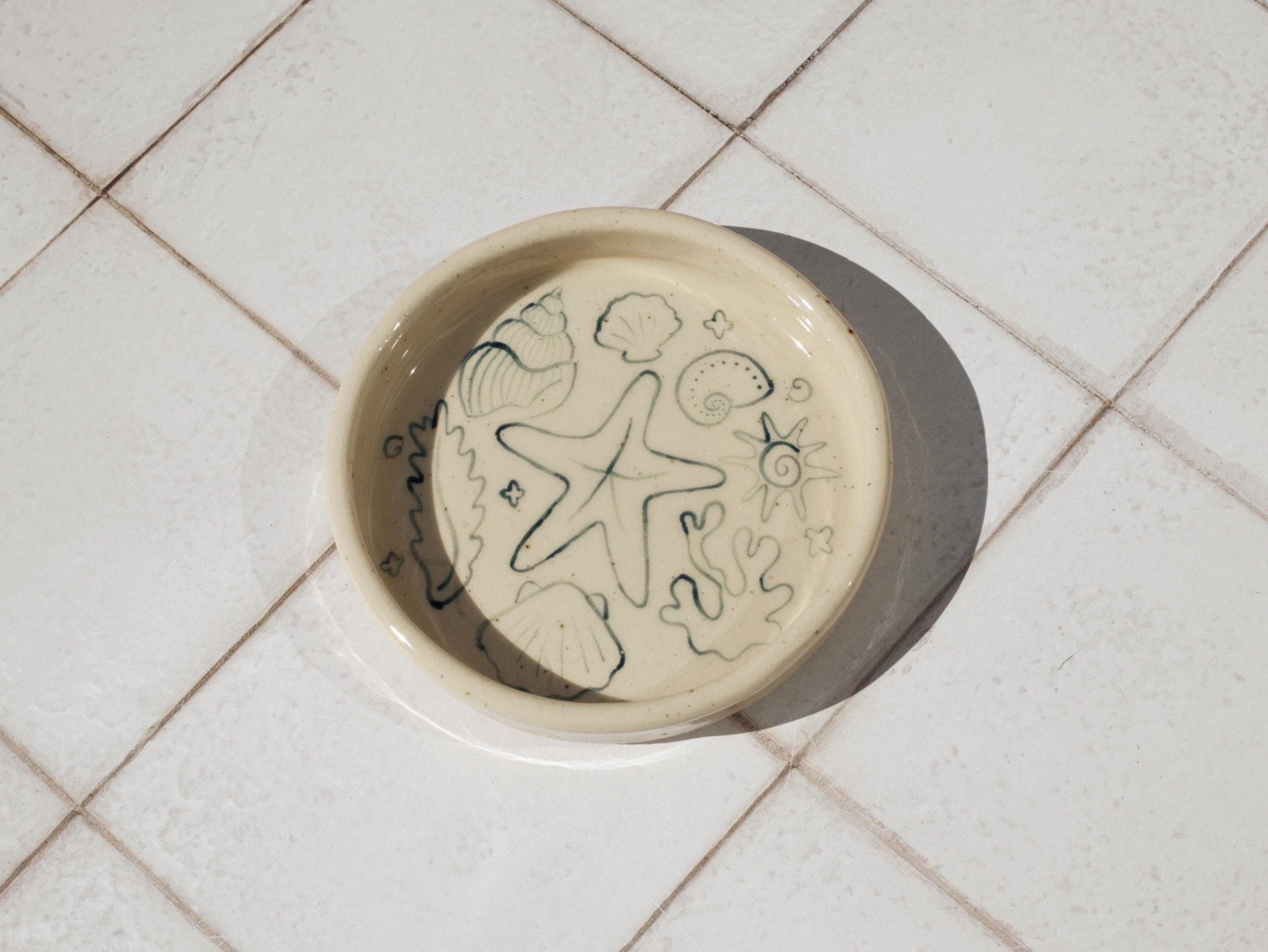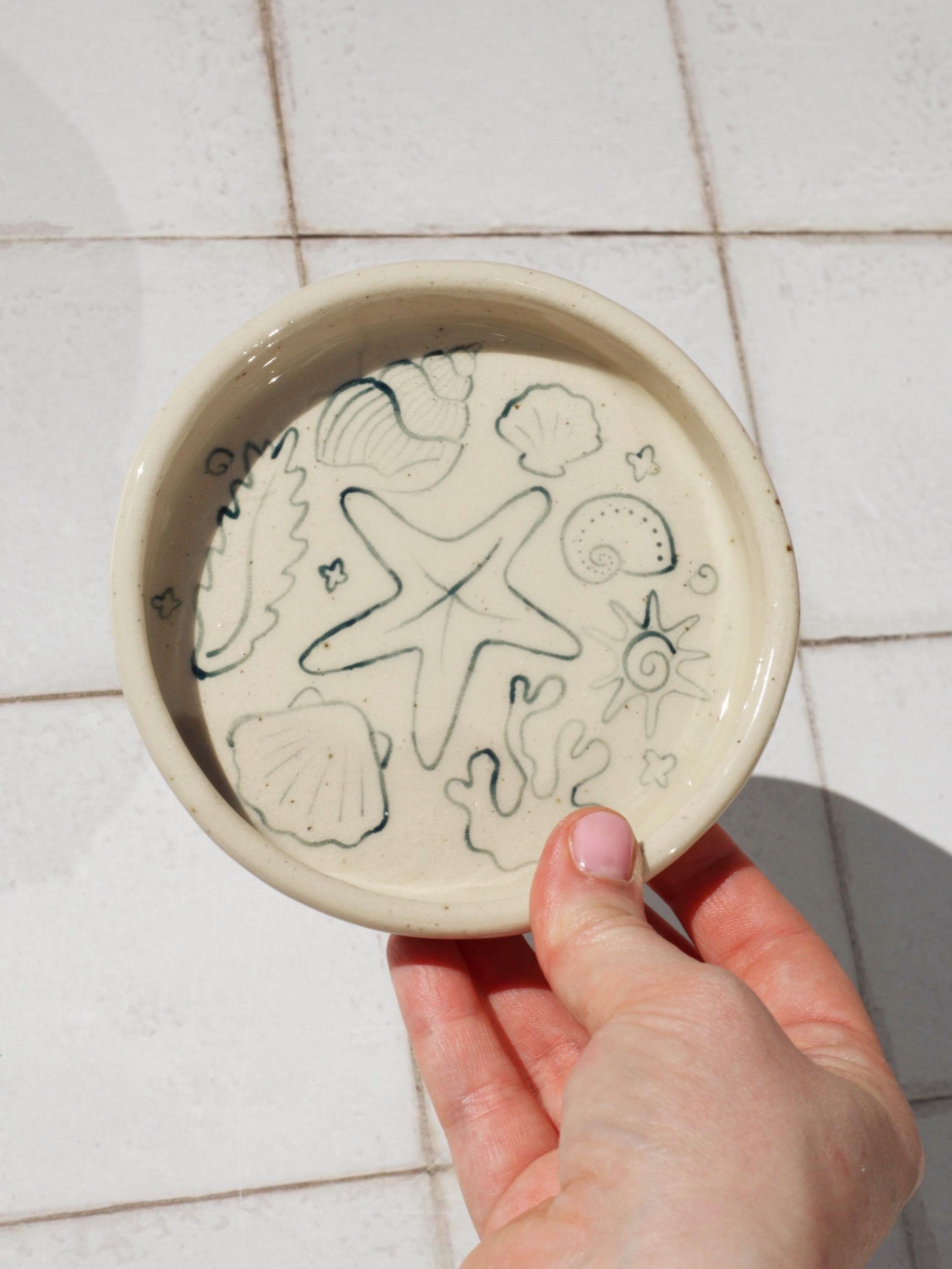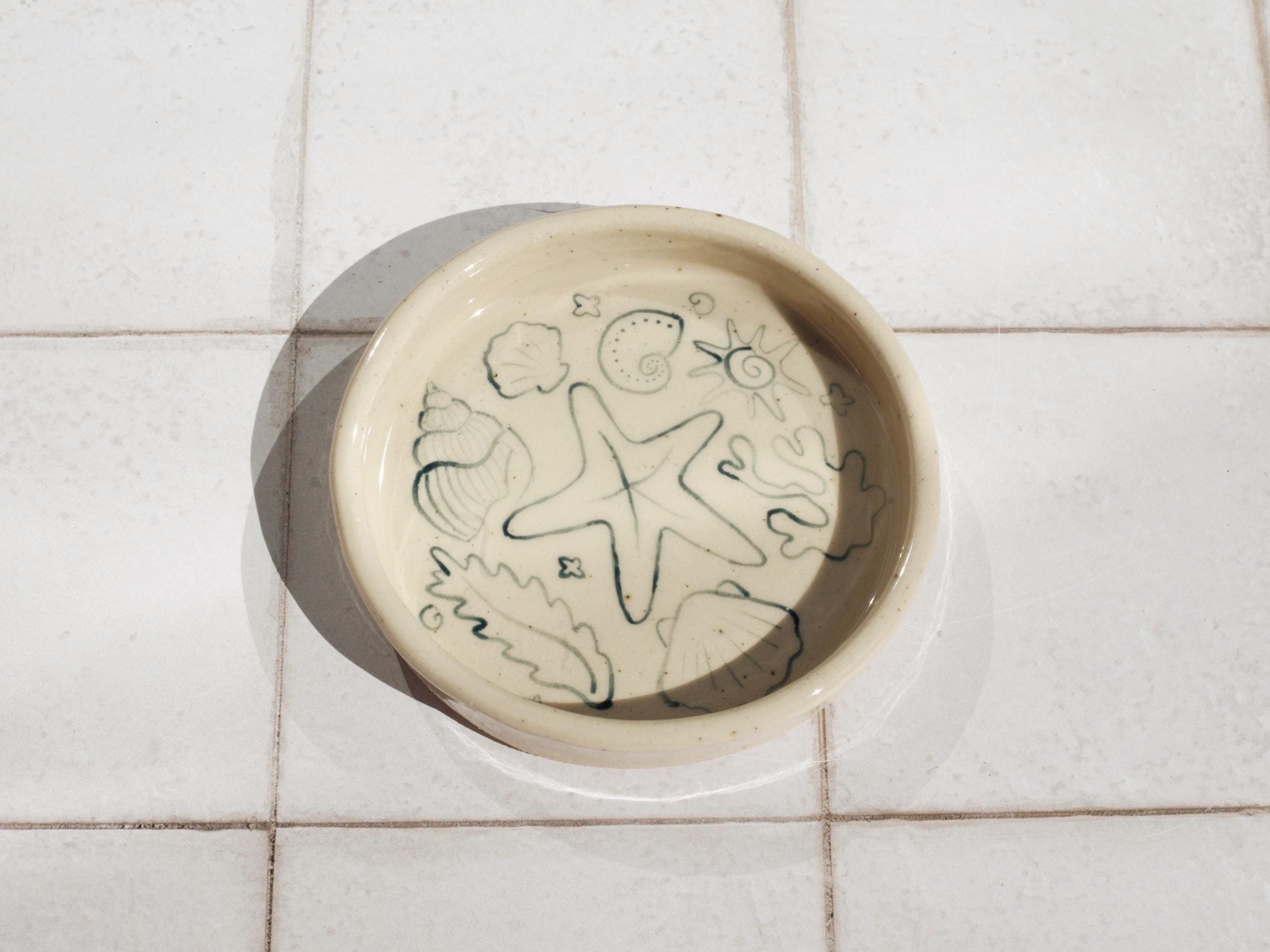 Hand painted Sea Shell Illustration stoneware tray - Slab built hand made pottery