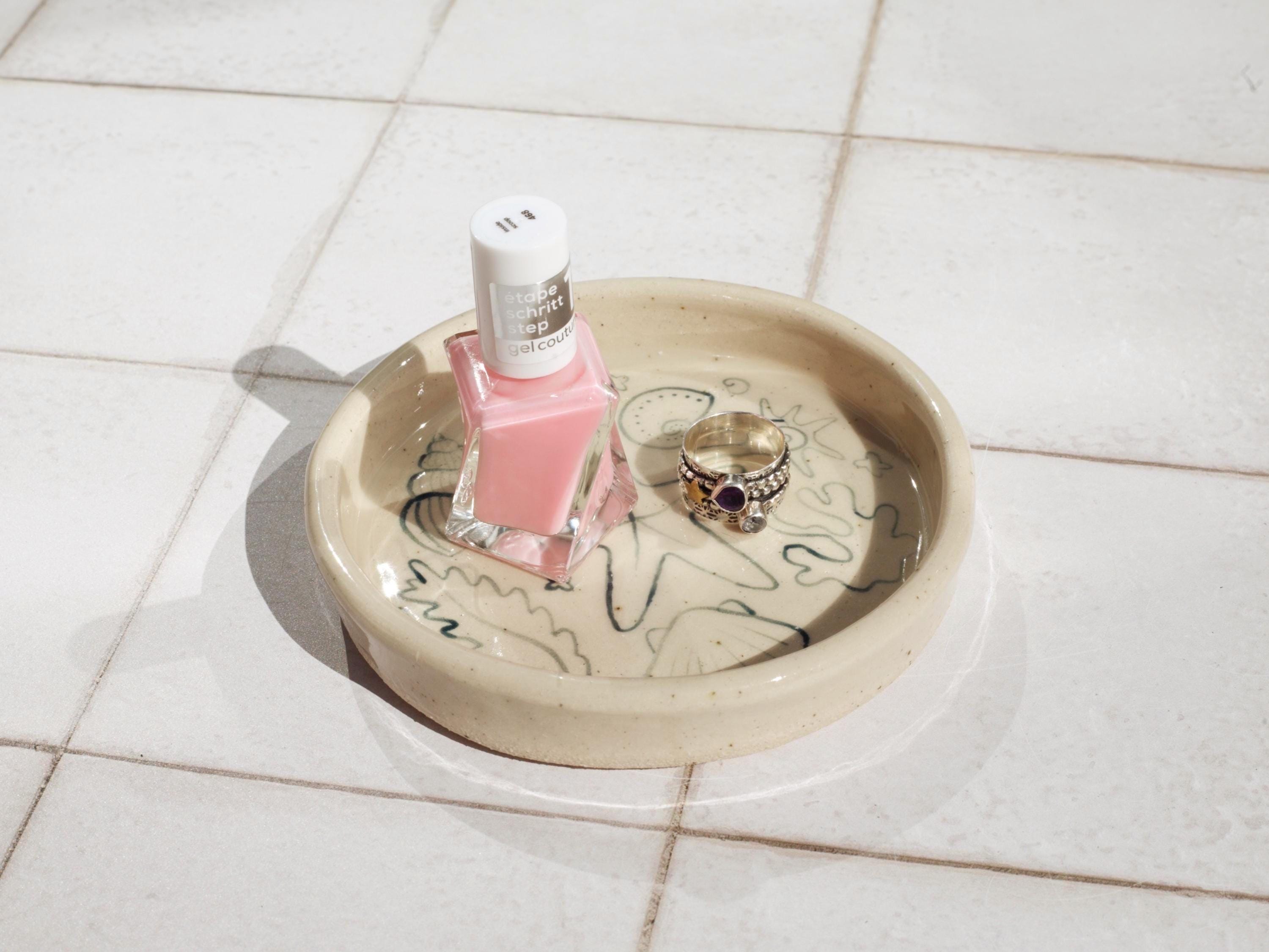 This hand-painted ceramic tray is a simple yet charming addition to your kitchen or dining table. Decorated with a floral pattern, this tray is perfect for trinkets, holding jewellery, or simply as a decorative piece.