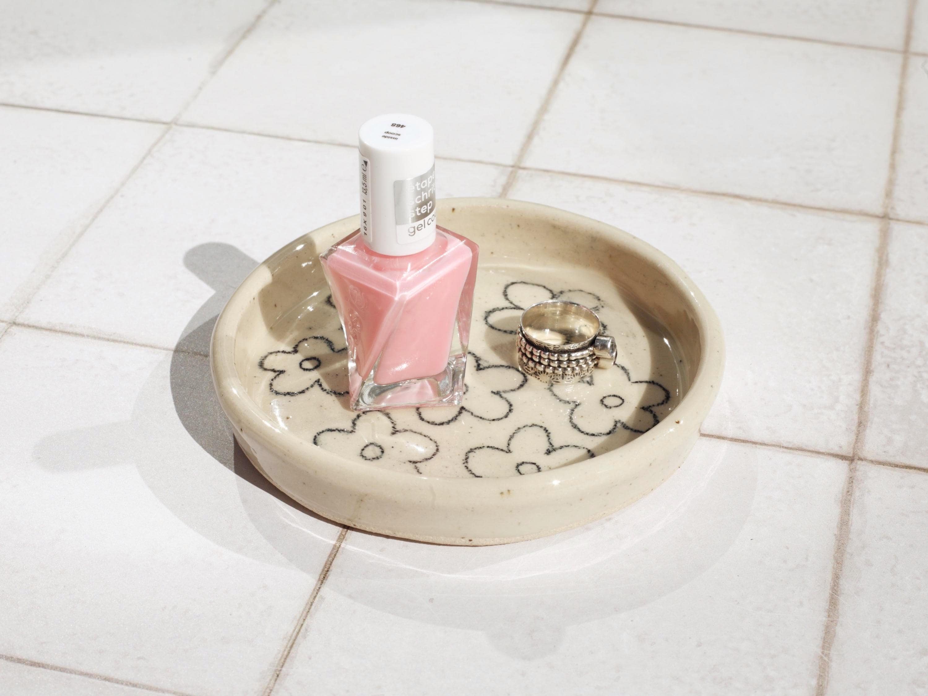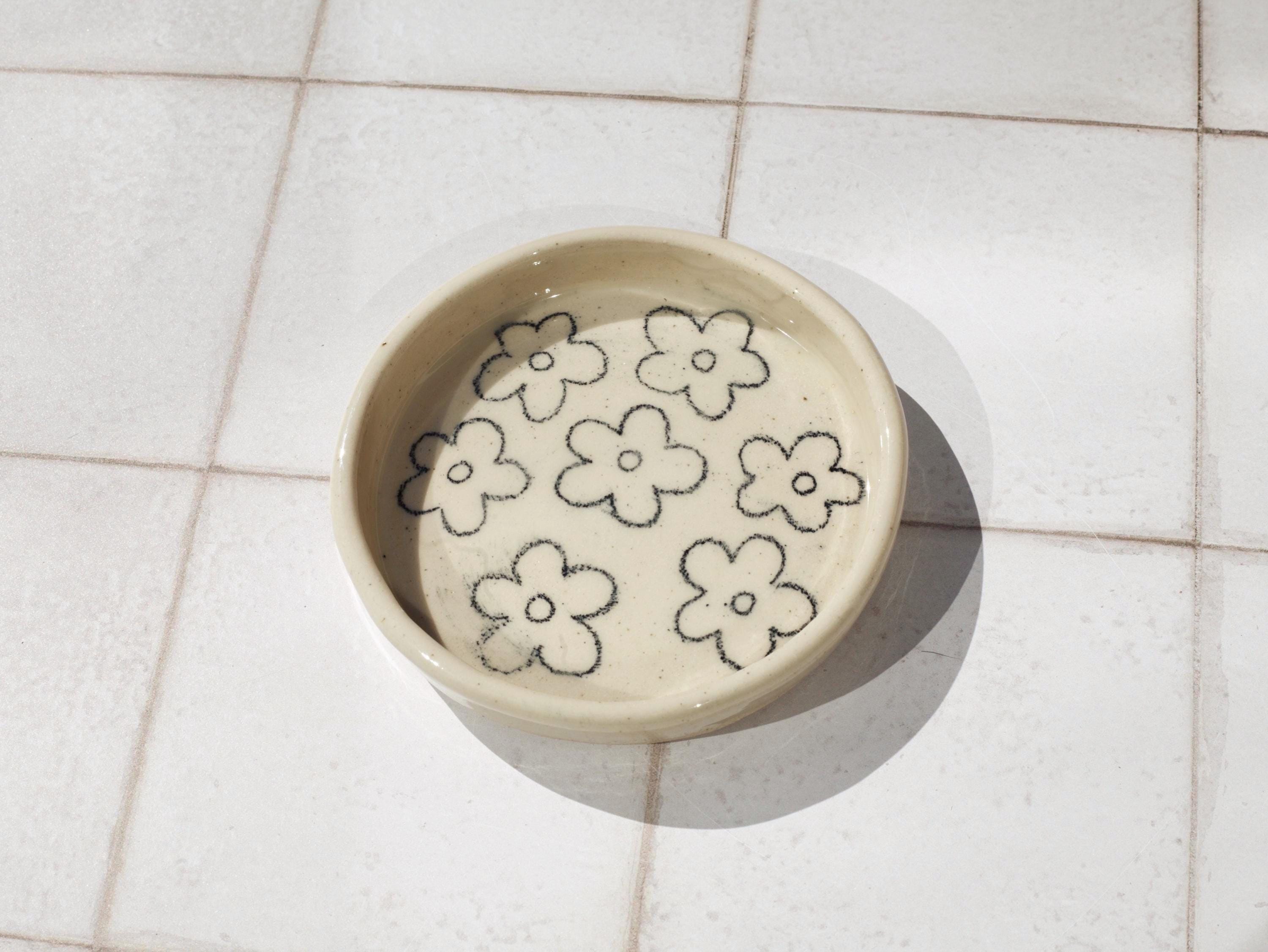 This hand made ceramic tray is a simple yet charming addition to your kitchen or dining table. Decorated with a floral pattern, this tray is perfect for trinkets, holding jewellery, or simply as a decorative piece.