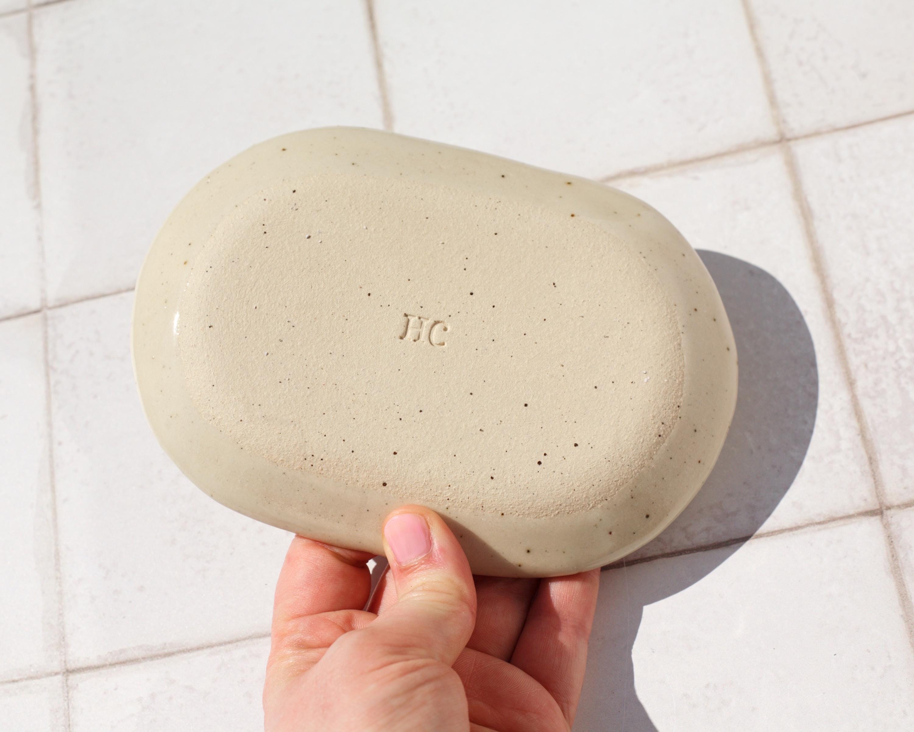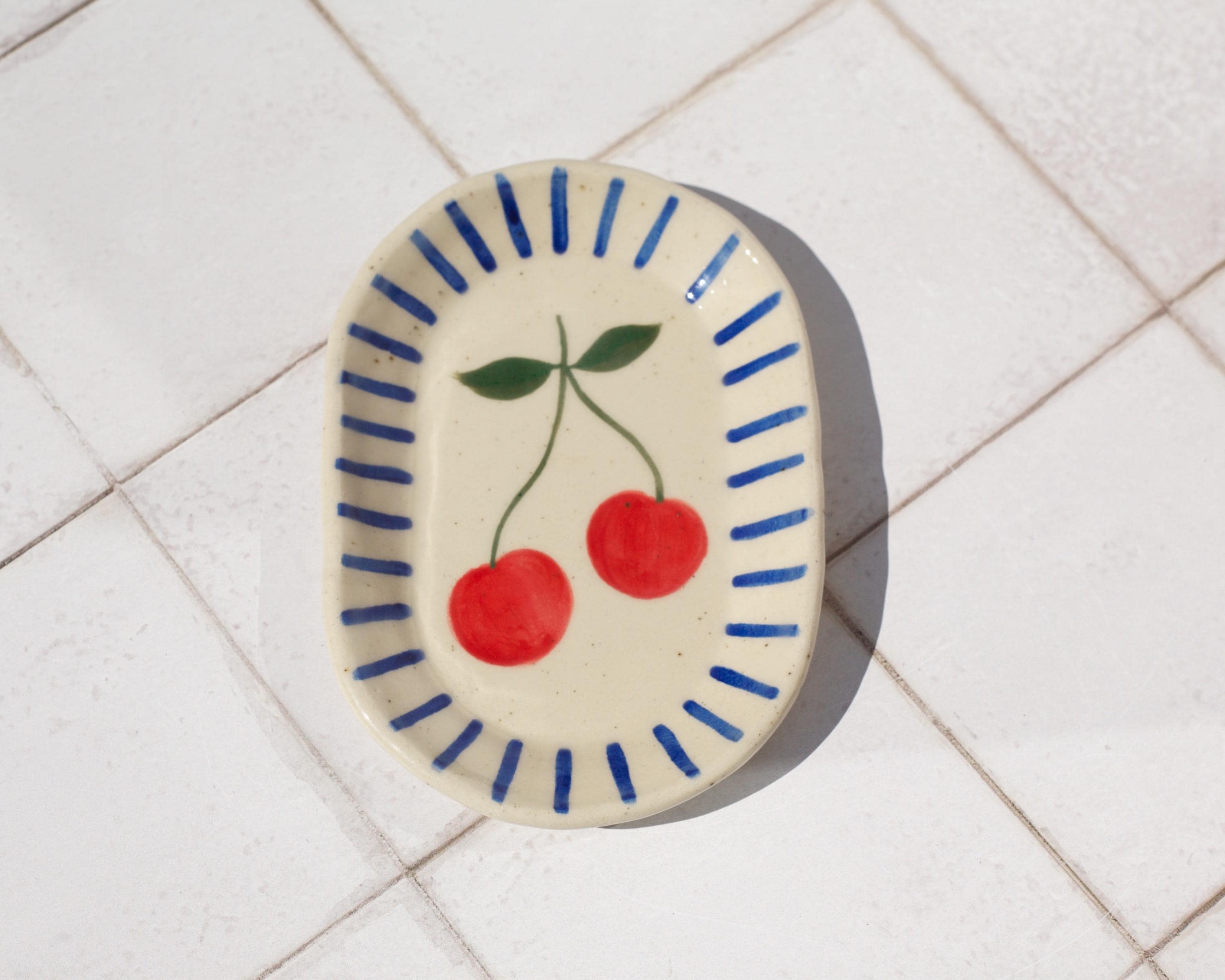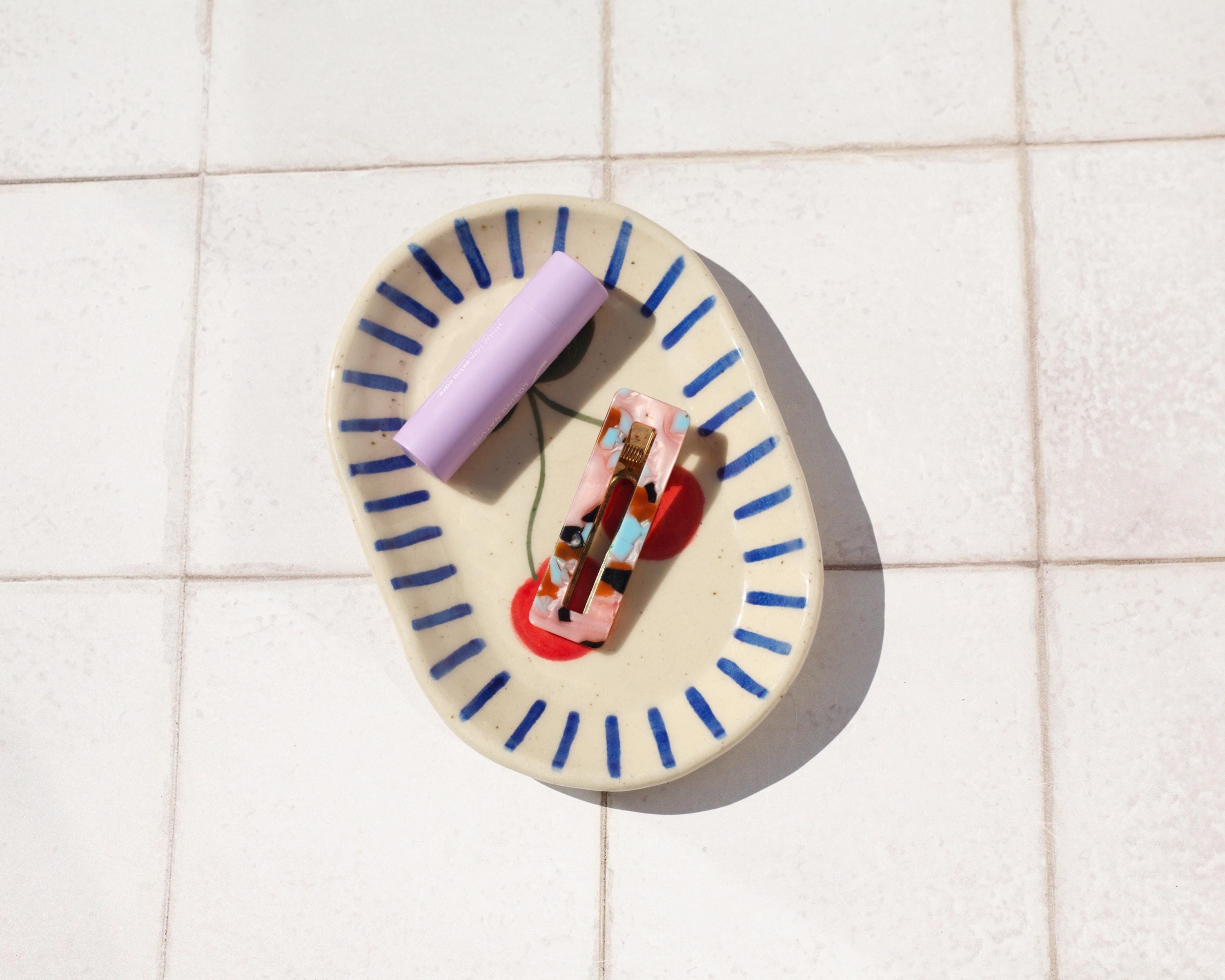 This hand-painted ceramic tray is a simple yet charming addition to your kitchen or dining table. This tray is perfect for trinkets, holding jewellery, or simply as a decorative piece.