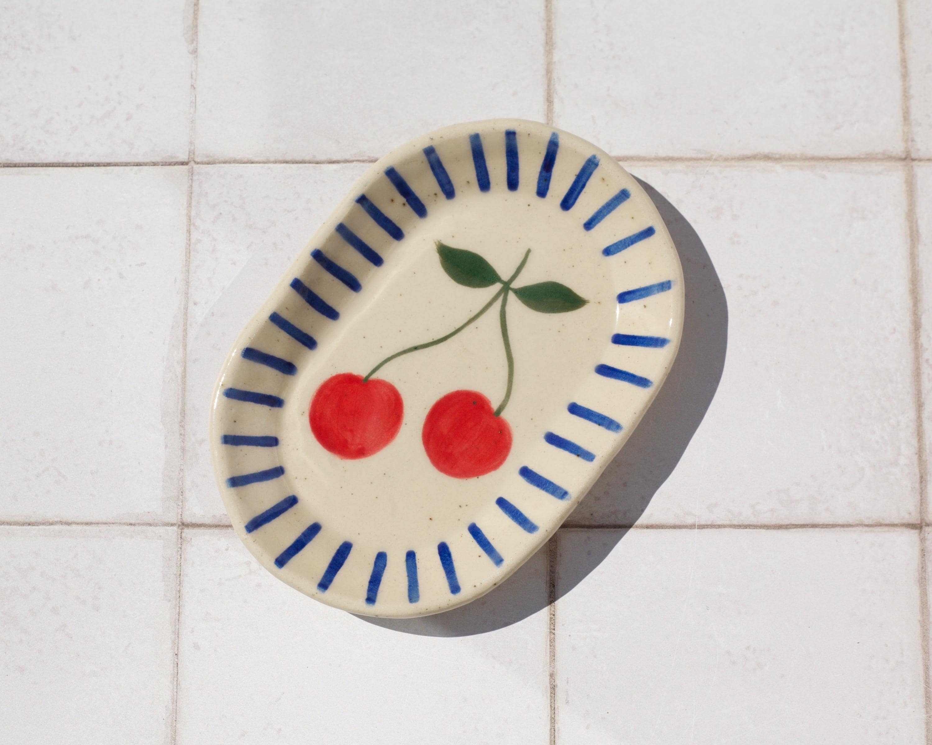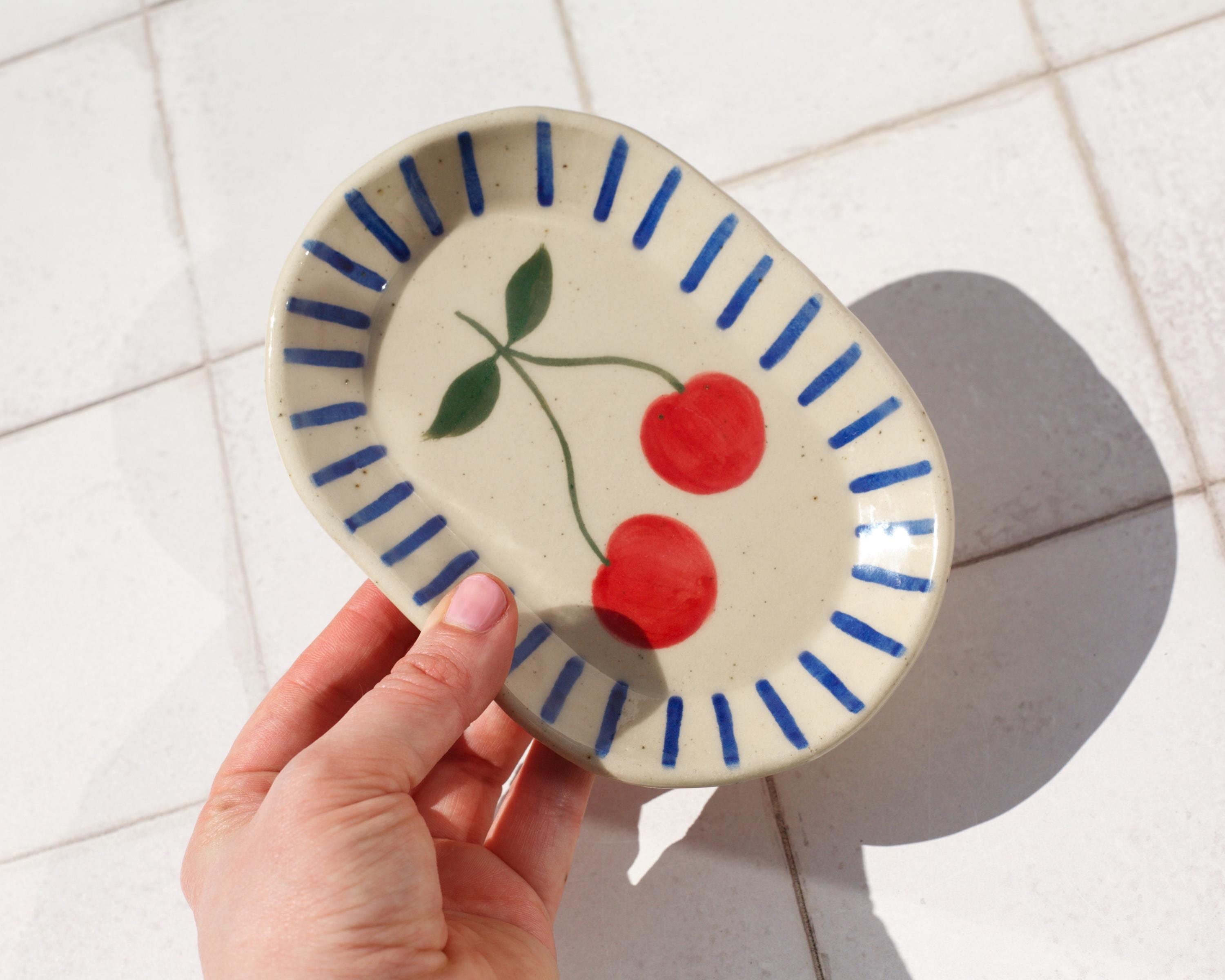 Hand painted Cherry stoneware tray - Slab built hand made pottery