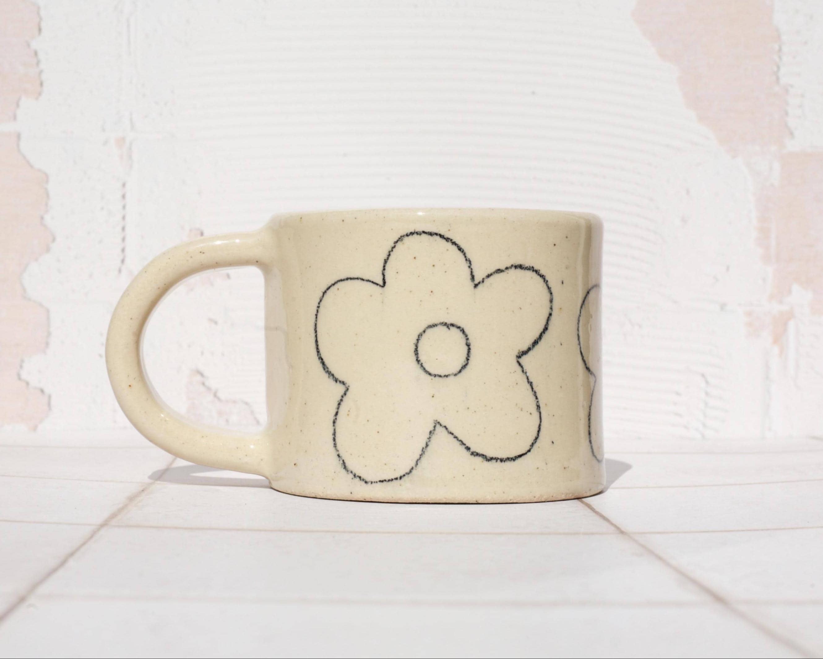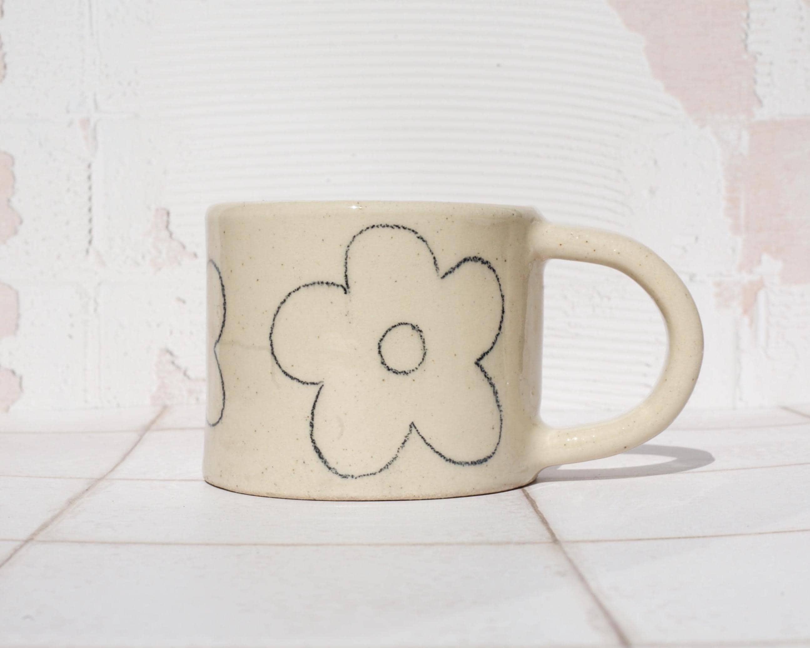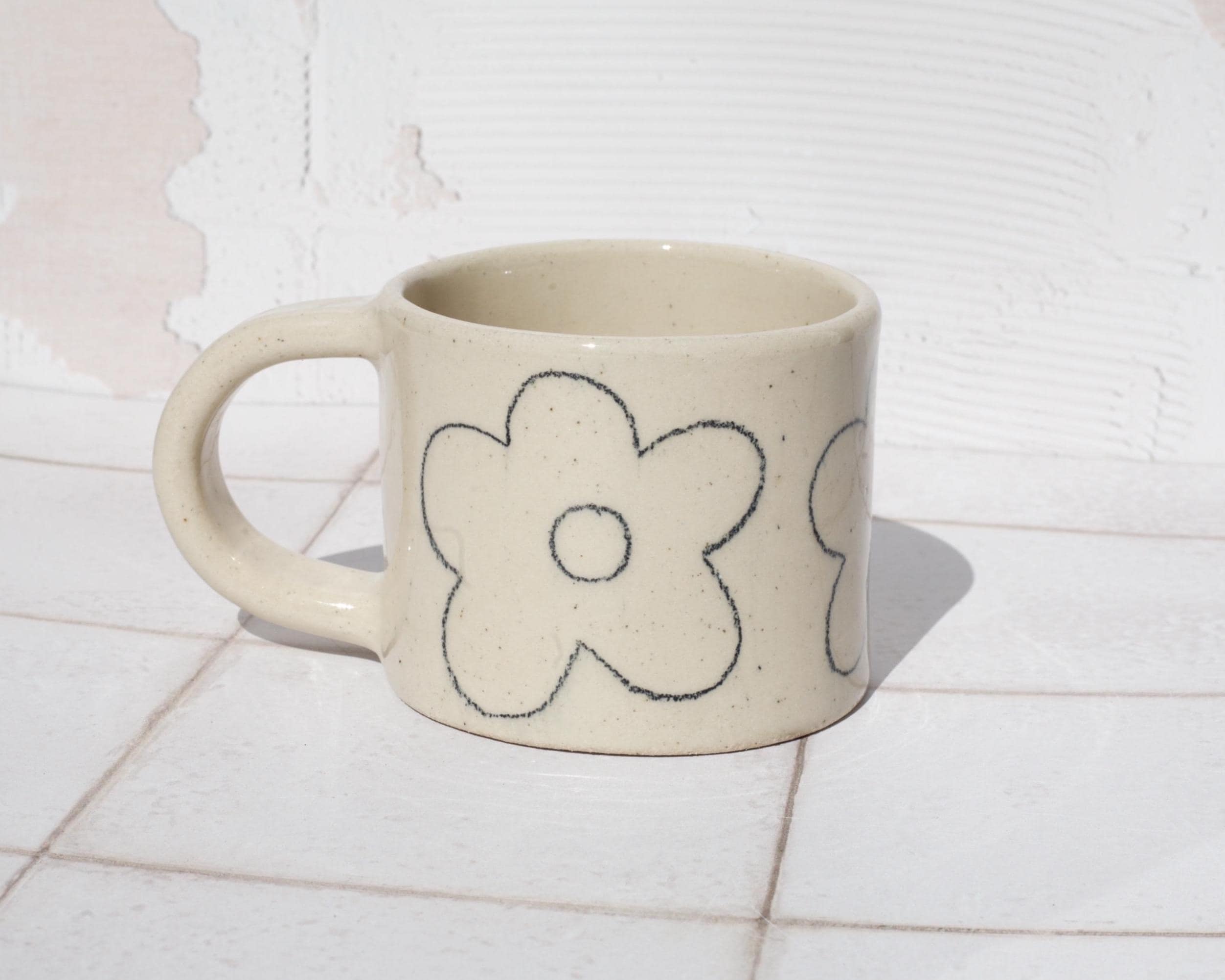 Featuring hand drawn pencil flowers, each mug will appear slightly different due to its hand made nature.